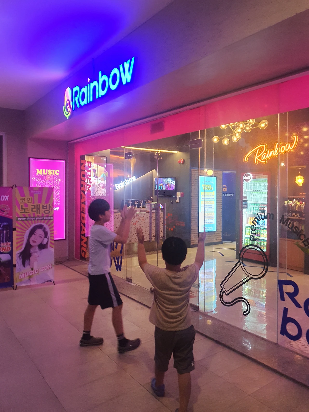 새로 생겨 시설이 깔끔하고 쾌적하다. 술, 담배가 금지된 곳이라 아이들과 가기 좋다. 유튜브 시스템이라 세부 조절 기능은 없지만 마이크 성능이 좋고, 가방이나 머리띠 같은 소품이 있어 사진 찍고 놀기 좋다. 10분 단위 결제가 가능해 집에 가기 전 들르기 딱 좋다.