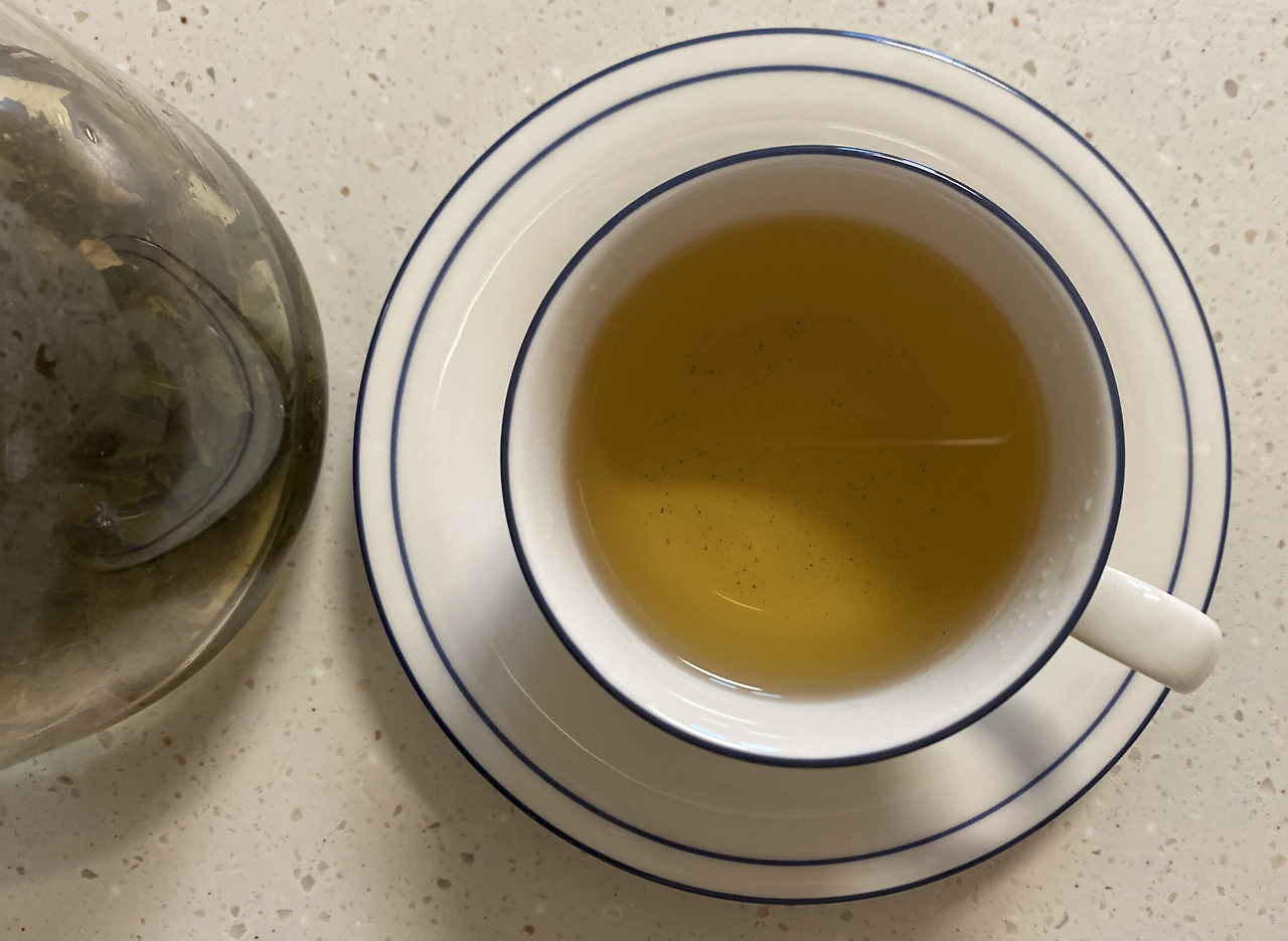 녹차의 떫은맛은 거의 느낄 수 없고 잔잔한 복숭아 향에 달큰하면서 깔끔한 맛이에요. 스트레이트로 차만 마시기에도 충분하지만 집에 있던 마늘 크로와상을 꺼내 티푸드로 함께 먹어봐요. 단짠의 조합으로 두 잔을 내리 마셔도 지겹지 않은 티타임이었어요.