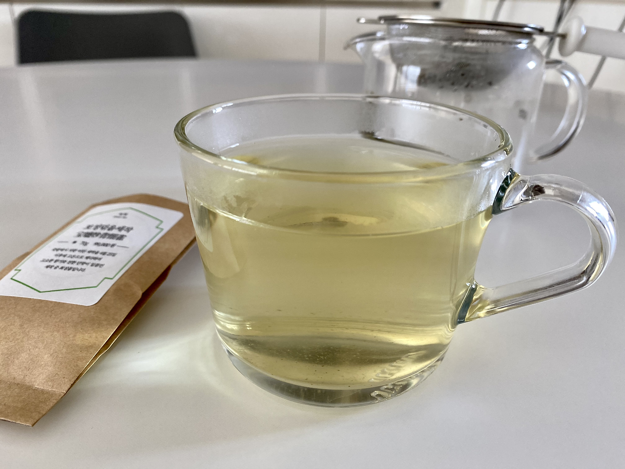 100도씨 끓인 물을 한 김 식혀서 잎차 2.5g, 물 200ml를 넣고 3분 우려요. 따뜻한 수증기에 섞여 풍기는 향기가 정말 고소해요. 연둣빛 수색에서 이렇게 고소한 향기가 난다니 신기해요. 수색으로만 봐서는 푸릇푸릇한 풀향이 날 것만 같았거든요. 얼른 마셔보고 싶어요.