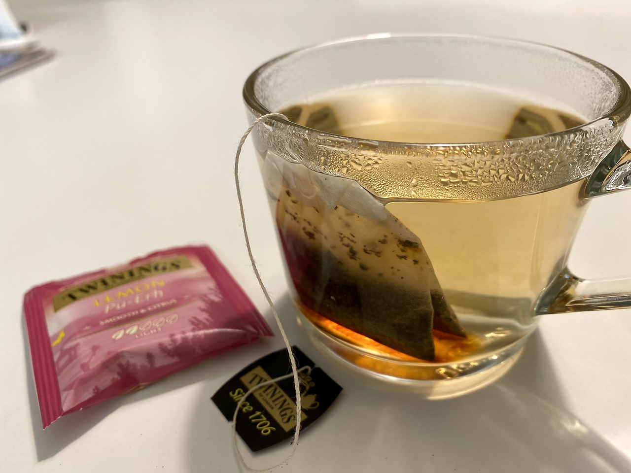 보이차를 마신다고 하면 보통 동그랗게 압착되어있는 편 모양을 떠올리게 되는데요. 생차로도 즐기지만 오래 묵힐수록 맛이 좋다는 숙차로도 많이 음용되기에 티백으로 접하기가 쉽지 않아요. 그런 의미에서 트와이닝의 레몬 푸얼 티는 쉽게 구매 가능한 티백이라 보이차 입문용으로도 좋을 것 같아요.