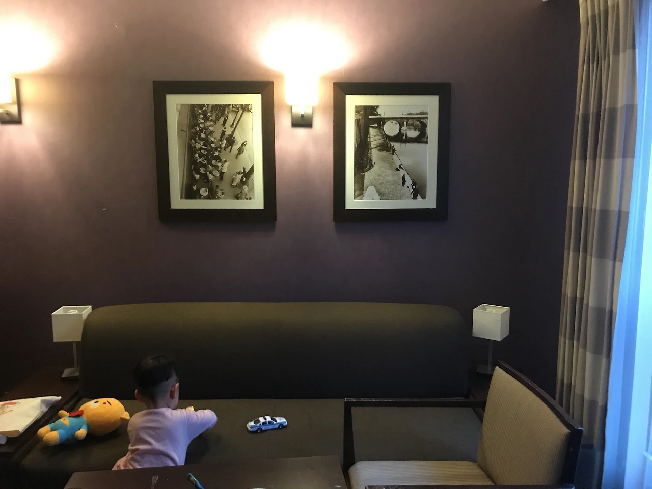 톤 다운된 자주색 벽지와 모던한 가구, 어둑한 방을 밝히는 두 개의 조명, 밖에서 신던 신발을 그대로 신고 들어가 밟아야만 했던 카펫까지 모든 것이 세련되고 이국적이었다.