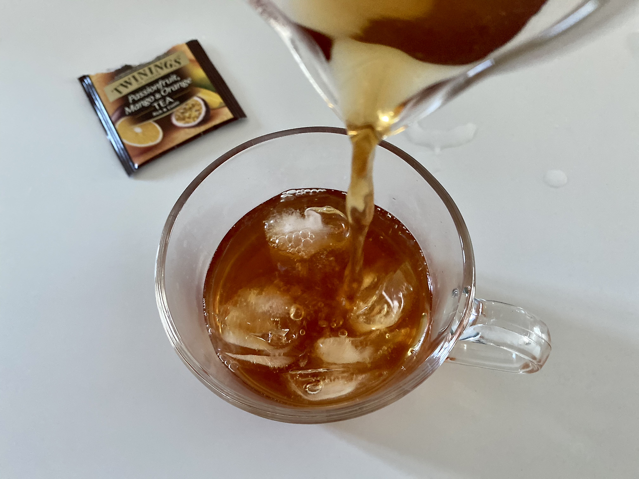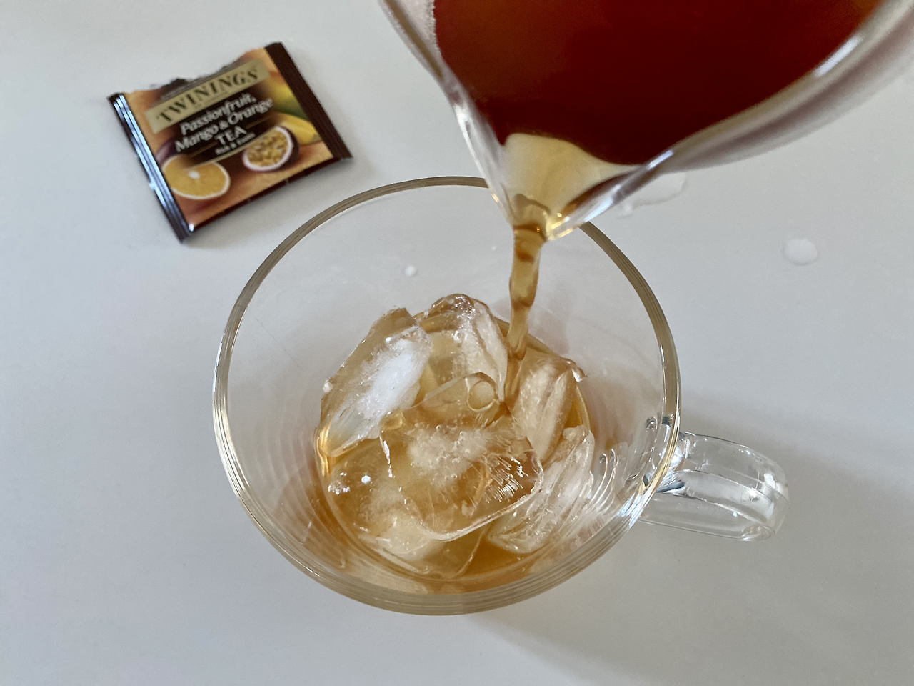 진하게 우린 패션후르츠 얼음컵에 따라줘요. 진한 오렌지빛 수색이 얼음을 타고 내려가며 연하게 퍼지는데요. 향이 너무 좋아서 맛도 기대돼요. 잉? 달콤하고 새콤한 맛을 기대했는데 아니에요. 깔끔하고 밍숭한데 끝 맛에 홍차의 수렴감을 살짝 느낄 수 있는 홍차네요. 향기에 취해 그 맛까지 달콤하리라 기대했었나 봐요.
