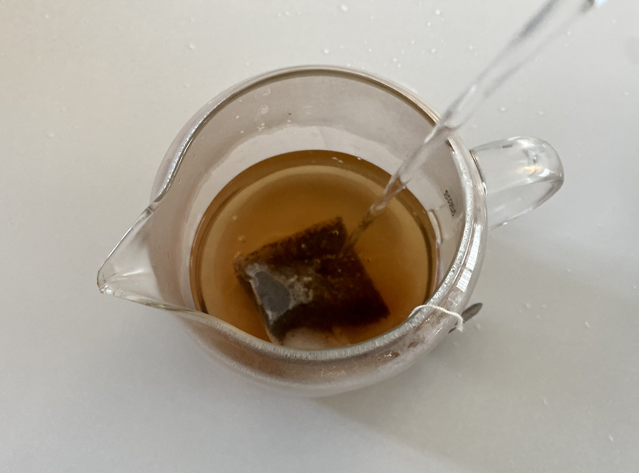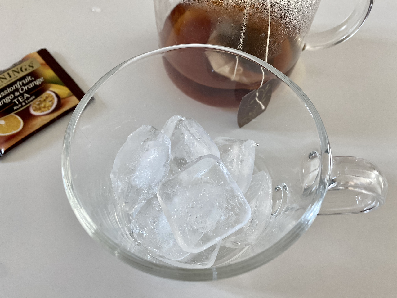 뜨거운 차보다는 냉차로 마시고 싶은데 그러려면 일단 티백을 진하게 우려내야 해요. 100도씨 물 100ml에 티백 1개를 넣고 5분 우려요. 물 양도 적게, 우려내는 시간도 길게 잡아서 진하게 우려요. 차가 우러나오는 동안 컵에는 얼음을 넣어 준비해서 기다려요. 달콤하고 새콤한 향기가 폴폴 풍기니 기분이 한껏 들떠요. 오랜만에 마시는 가향차라 색다른 기분이에요.