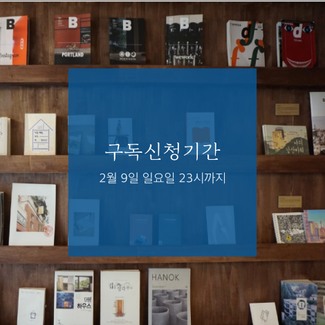 [잘사는 책방] 2020년 2월호 구독 기간은 2월 10일(월)부터 2월 29일(토)까지 입니다. 구독 신청기간은 2월 9일 (일) 23시까지 입니다. 일주일 전까지(2월 2일까지 신청하신 분들에 한해 구독료 할인 혜택을 드릴 예정입니다.)