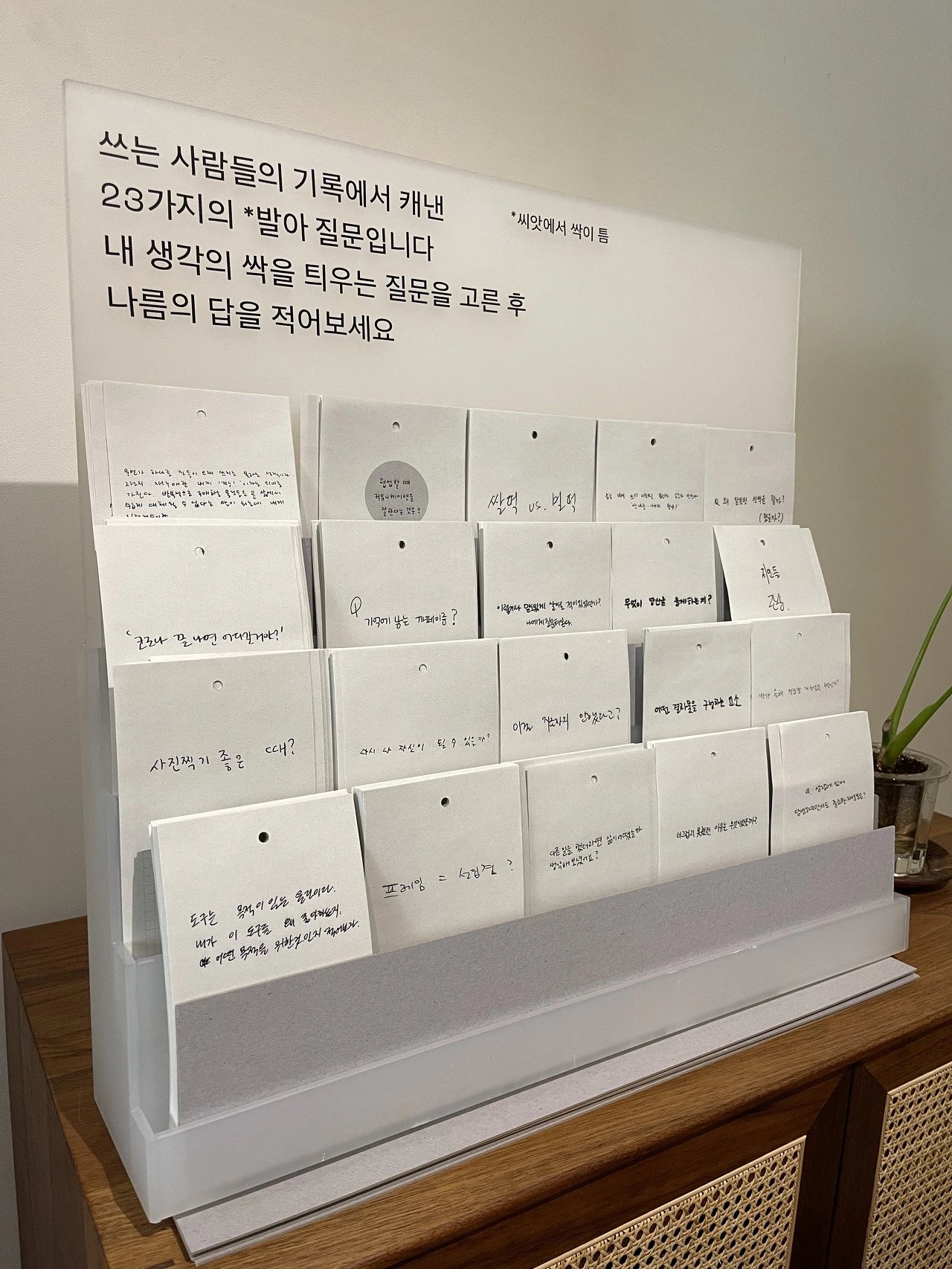 "나름의 성실로 열매 맺는 쓰는 생활"이라는 슬로건을 중심으로 쓰는 사람 23명의 다이어리를 확인할 수 있었습니다. 모두 다이어리를 완벽하게 채우지 않았고, 많은 여백이 있었지만 저마다의 씨앗을 나름의 방식으로 꾸준하게 기록하고 있었다는 점이 의미 있었습니다.