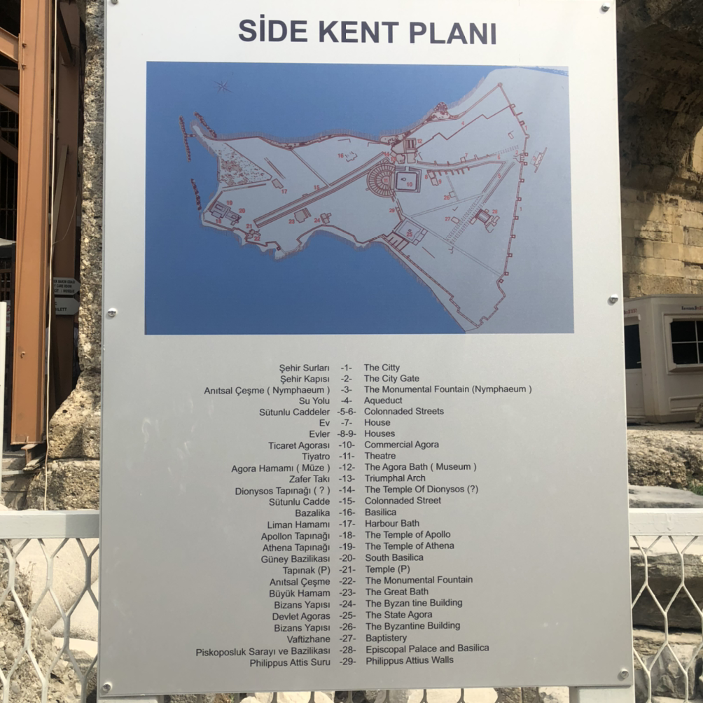시데는 고대 로마 유적이 많이 남아있는 도시다. 시데 오토가르에서 관광지까지 가는 길에 가장 먼저 만날 수 있는 유적은 고대 원형극장이다. 2세기에 지어졌다고 하는데 보존 상태가 우수해서 아직도 실제 뮤지컬과 오페라가 열린다고 한다.