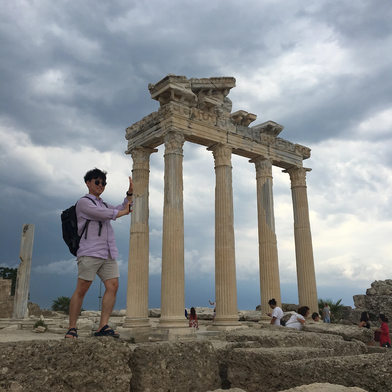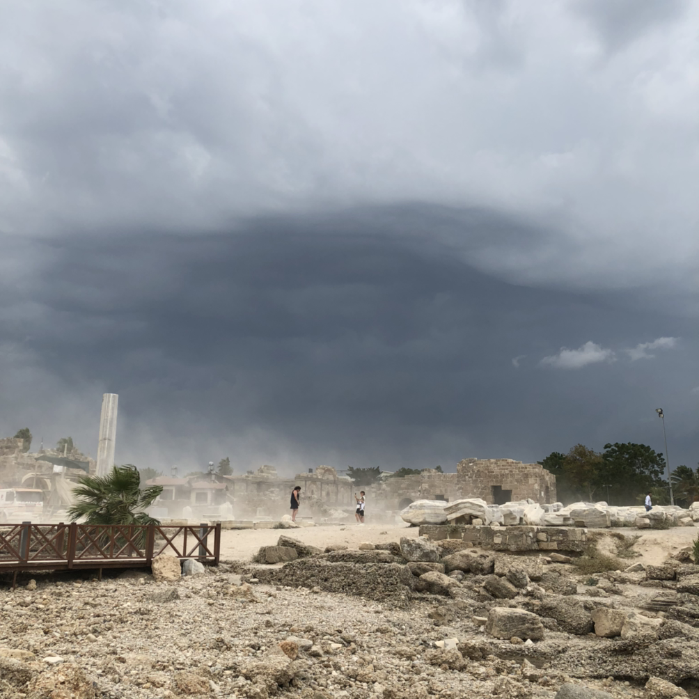 SNS에서 ‘시데’를 검색하면 폐허가 된 아폴론 신전 기둥을 뒤로한 사진이 넘쳐난다. 우리 역시 그 인증샷을 남기기 위해 이곳에 왔다. 첫 번째 목적지였던 원형극장에서 많은 사진들을 남기고, 다음 목적지인 아폴론 신전을 향해 걸었다. 길 곳곳에 휴양지 특유의 너스레 섞인 상인들의 인사가 평화로웠다. 그런데 살랑살랑 불어오던 실바람이 점차 사나워지더니 거센 바람과 함께 비가 한 두 방울씩 떨어지기 시작했다. 날씨 앱을 통해 확인한 것보다 훨씬 더 이른 비였다. 상인들은 하나둘씩 가게문을 닫았고, 우리는 걸음을 서둘러 아폴론 신전으로 향했다. 신전 주변에는 이미 관광객들이 사진을 찍는데 열심이었다. 우리처럼 비 소식에 놀라 급하게 사진을 찍는 이들도 있었지만, 비는 아랑곳 하지 않고 느긋하게 여러 포즈로 추억을 남기는 이들(모래폭풍 속에서도)도 있어 감탄하기도 했다. 그리고 옆에서 그런 관광객들을 지켜보던 바다는 얼마 지나지 않아 어둡고 무거운 파도가 일렁이는 무서운 바다로 변해가고 있었다.