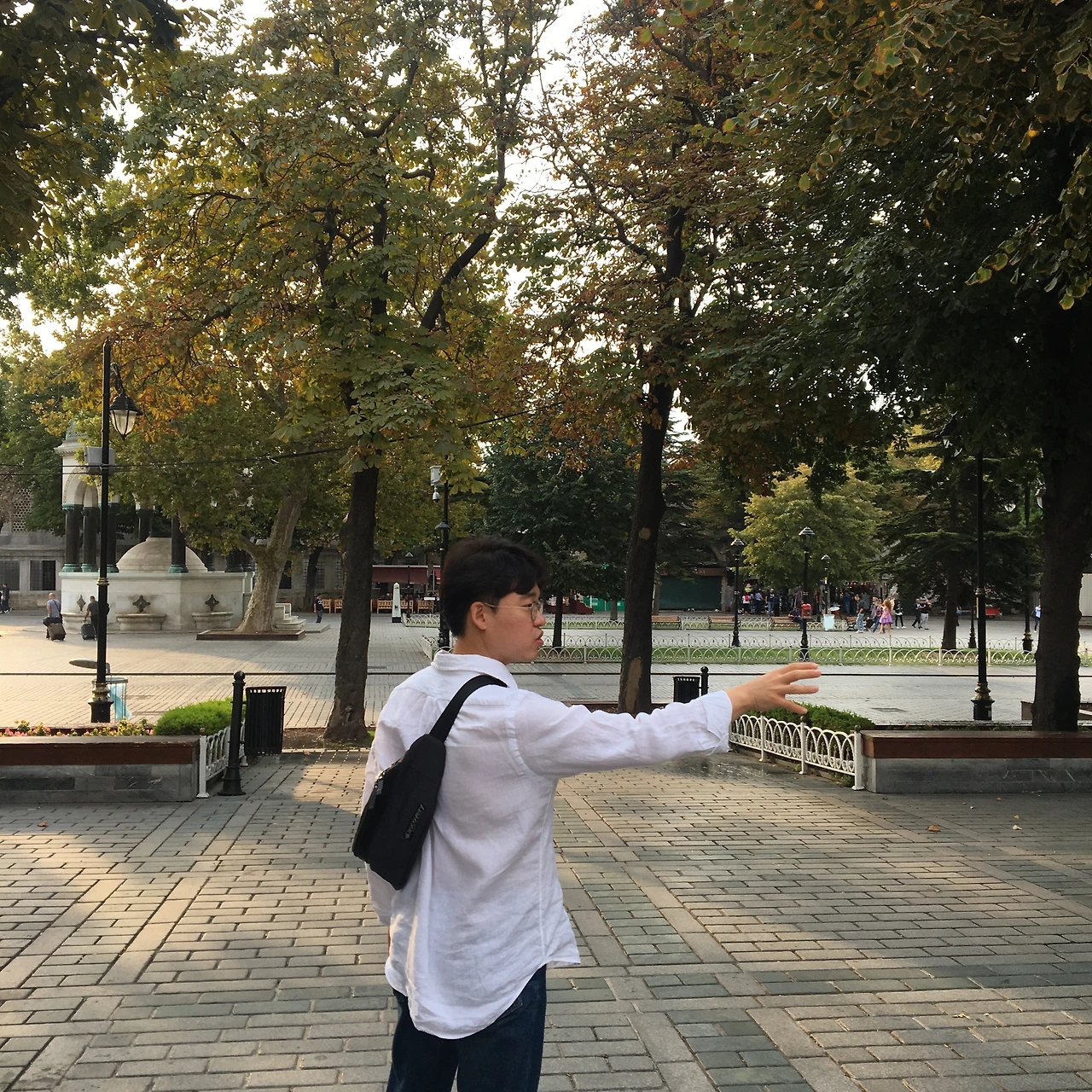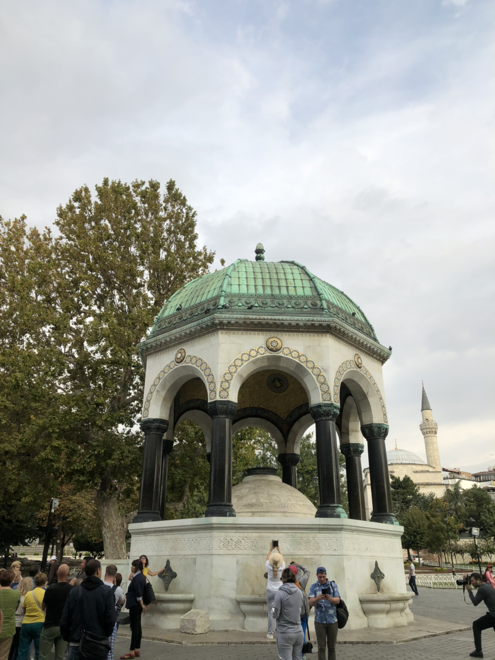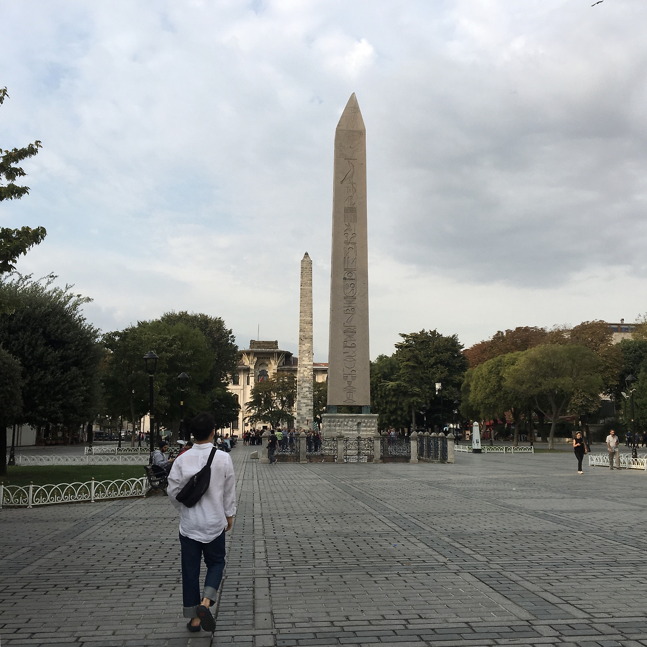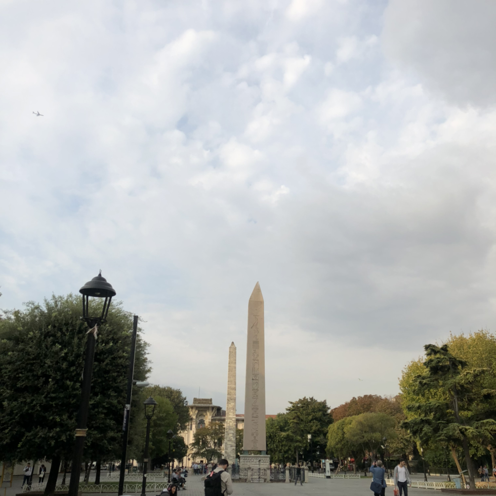한적한 아흐메트 광장에서 아침산책, 이집트에서 온 오벨리스크와 독일에서 온 분수대가 있다. 하나는 약탈, 다른 하나는 선물로 받은 것이지만.