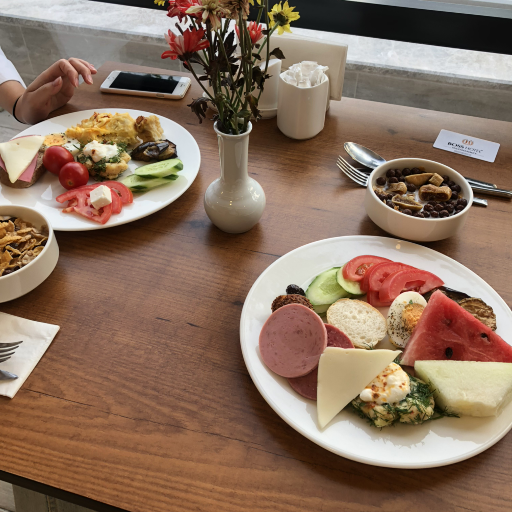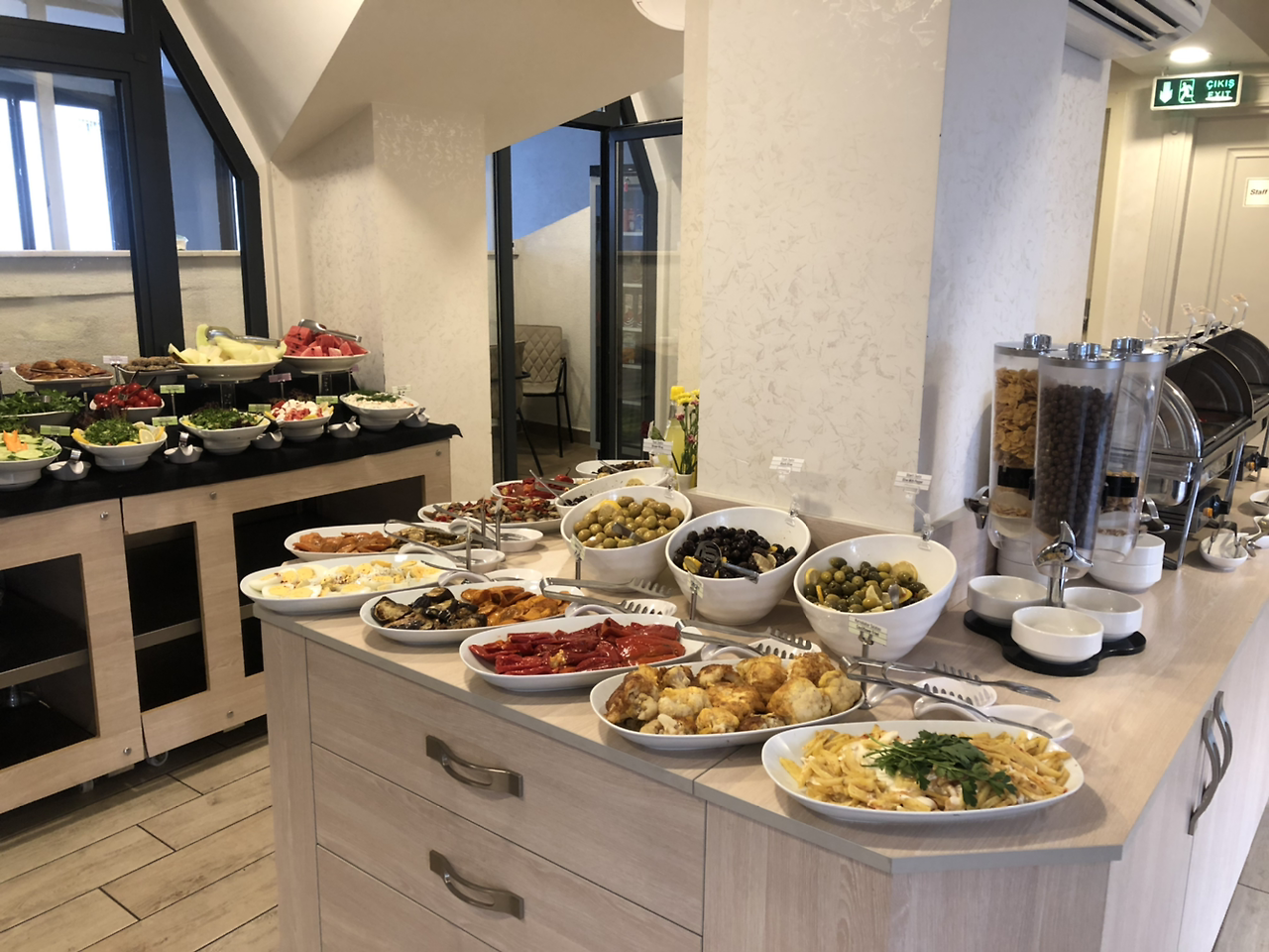 숙소에 딸린 작은 엘리베이터를 타고 가장 높은 층으로 이동하니 가짓수가 풍부한 아침 조식이 준비되어 있다.