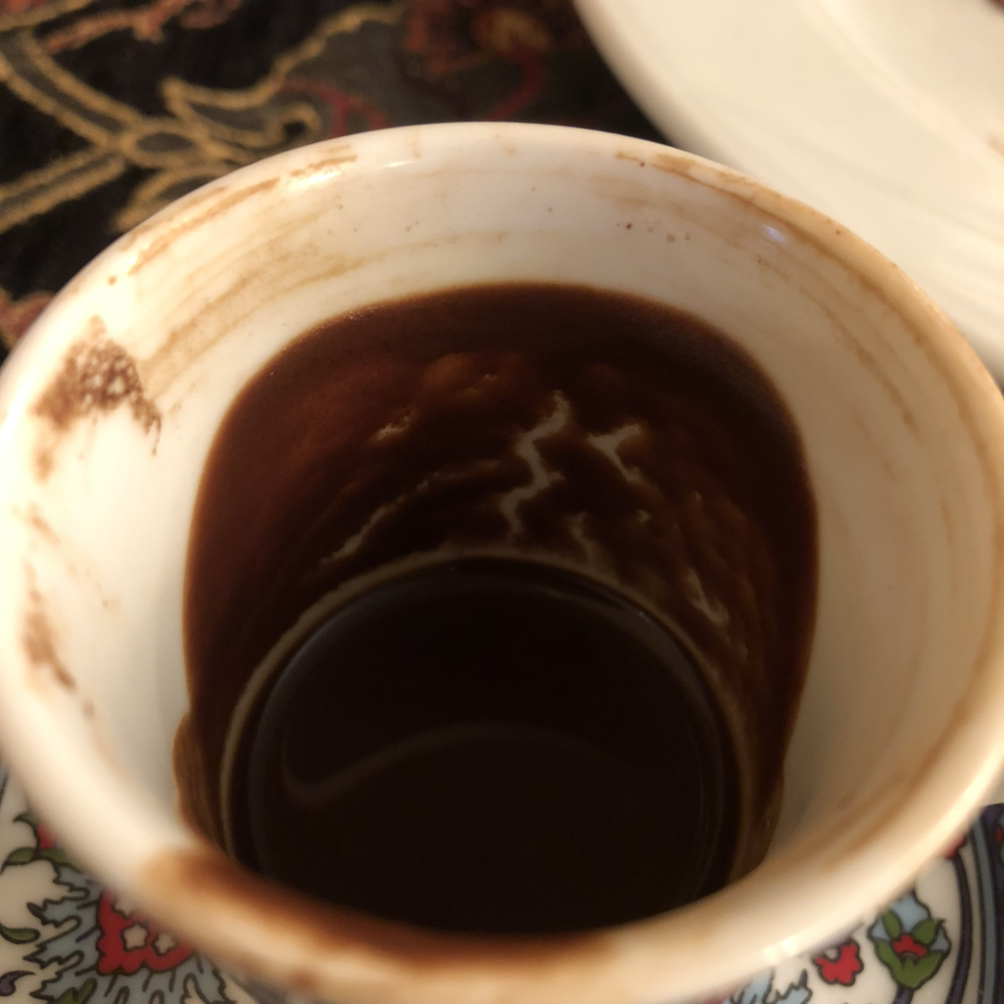 터키 커피는 음료를 먹고 나면 고운 원두가 컵 바닥에 남아있다, 원두를 압축하거나 짜내는 방식이 아니라 원두와 함께 커피를 우려내는 터키커피 특유의 방식 때문.