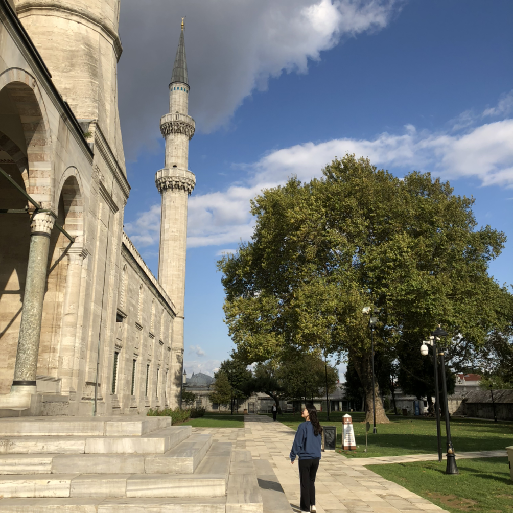 하루 전 오스만 투어 때는 보지 못했던 맑은 하늘과, 길목에서 여행객들을 반기는 아기 고양이들을 지나쳐 걸어가니 미나렛이 보인다.
