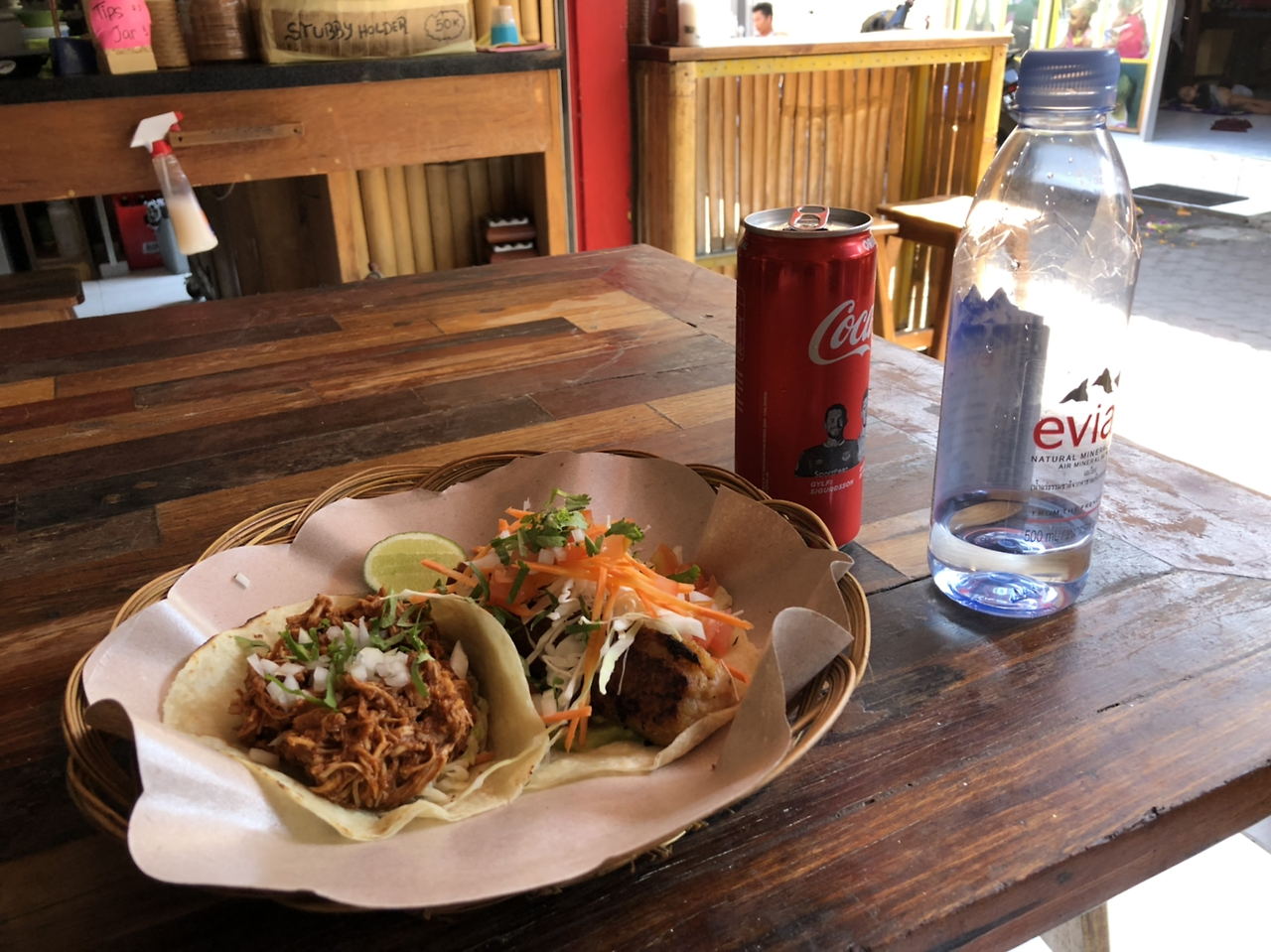 후기와 별점이 가장 높은 타코 집으로 갔다. 내부는 아주 작지만 열명 남 짓은 앉을 수 있게 잘 구성해놓았다. 메뉴는 돼지고기, 새우, 치킨, 계란이나 야채처럼 채식메뉴들도 있고, 2개, 3개를 시킬 때마다 가격이 조금 더 저렴해지는 것 같다. 나는 치킨과 감자 오믈렛 타코를 2개 시켰다. 헐? 맛있잖아... 역시 구글맵 별점은 실망시키지 않는다. 아직까지 루피아 화폐에 익숙하지 않아 돈을 촤르르 펼쳐놓고 사장님이 골라가게 했다. 계산하기 힘들 땐 이 방법이 최고지만 이 동네에선 가끔 편의점에서도 사기를 친다고 하니 조심해야겠다. (어차피 사기 쳐도 모르는 게 함정)