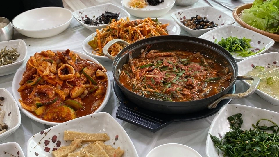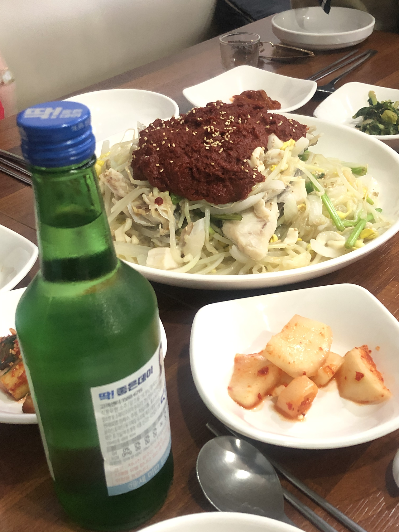 위에 첨부한 1번 사진은 물회인데, 내 인생물회야 꾸덕꾸덕한 양념에 뜨끈한 밥을 말아서 갓김치를 올려먹으니 영혼이 남해 바다에 빠지는 것 같은 그런 맛이랄까? :)