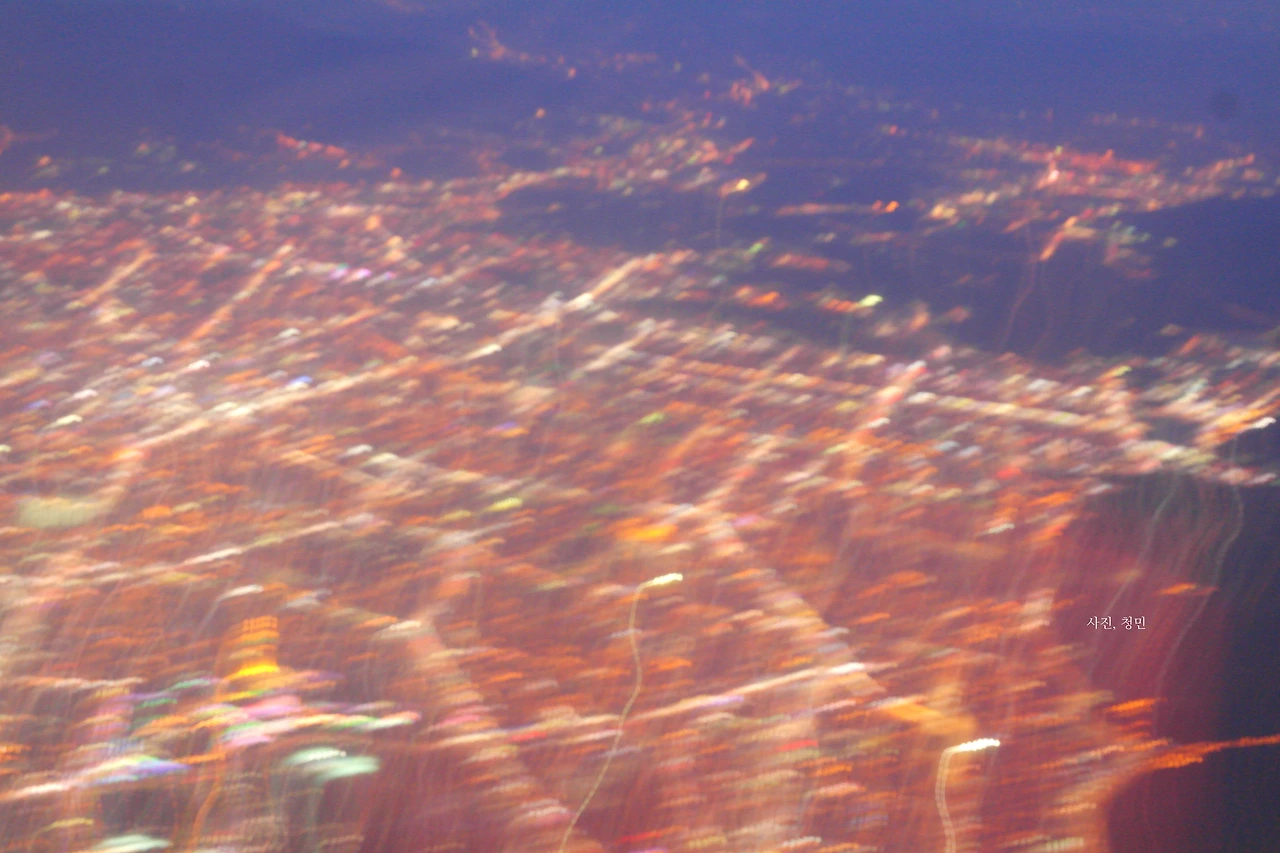 나는 흔들린 사진을 소중히 여기는 편이다. 꽤 예쁘다고 생각하기 때문이다. 그렇게 된 계기가 있다. 제주도 행 밤비행기에서 야경이 예뻐, 카메라를 들어 셔터를 눌렀다. 셔터 스피드를 맞추지 않아 셔터 소리가 굉장히 느리게 났다. '처어어얼커어어컥' 아뿔싸! 속으로 실수를 감지했다. 비행기가 다른 방향으로 틀기 전에, 서둘러 셔터 스피드를 맞췄지만 실패했다. 결국 나는 그 비행기 안에서 제대로 된 야경 사진을 건질 수 없었다. 아이고, 망했네. 한숨을 푹 쉬곤, 카메라를 열어 찍은 결과물을 확인했다. 그런데 결과물은 생각보다 훨씬 더 운치 있었다.