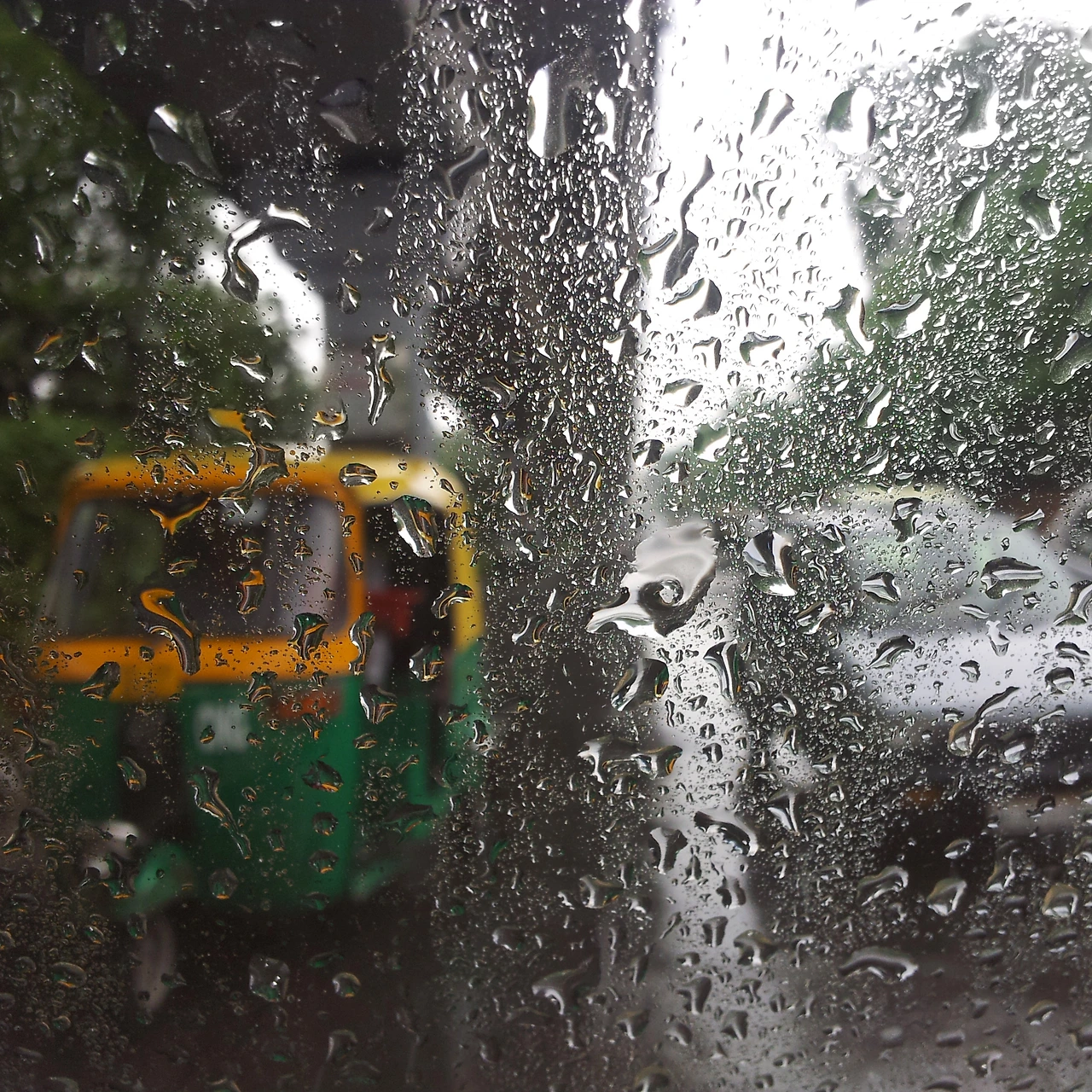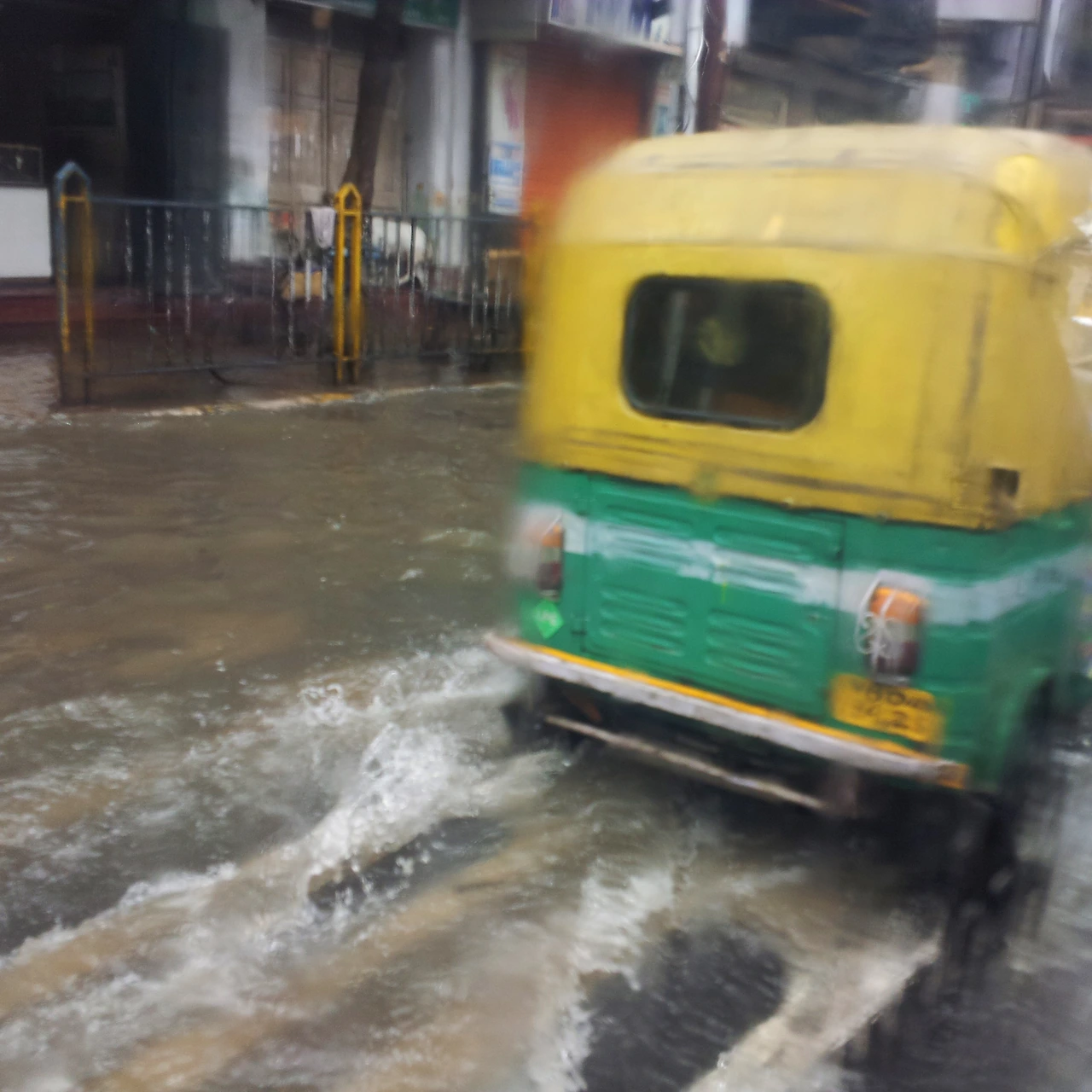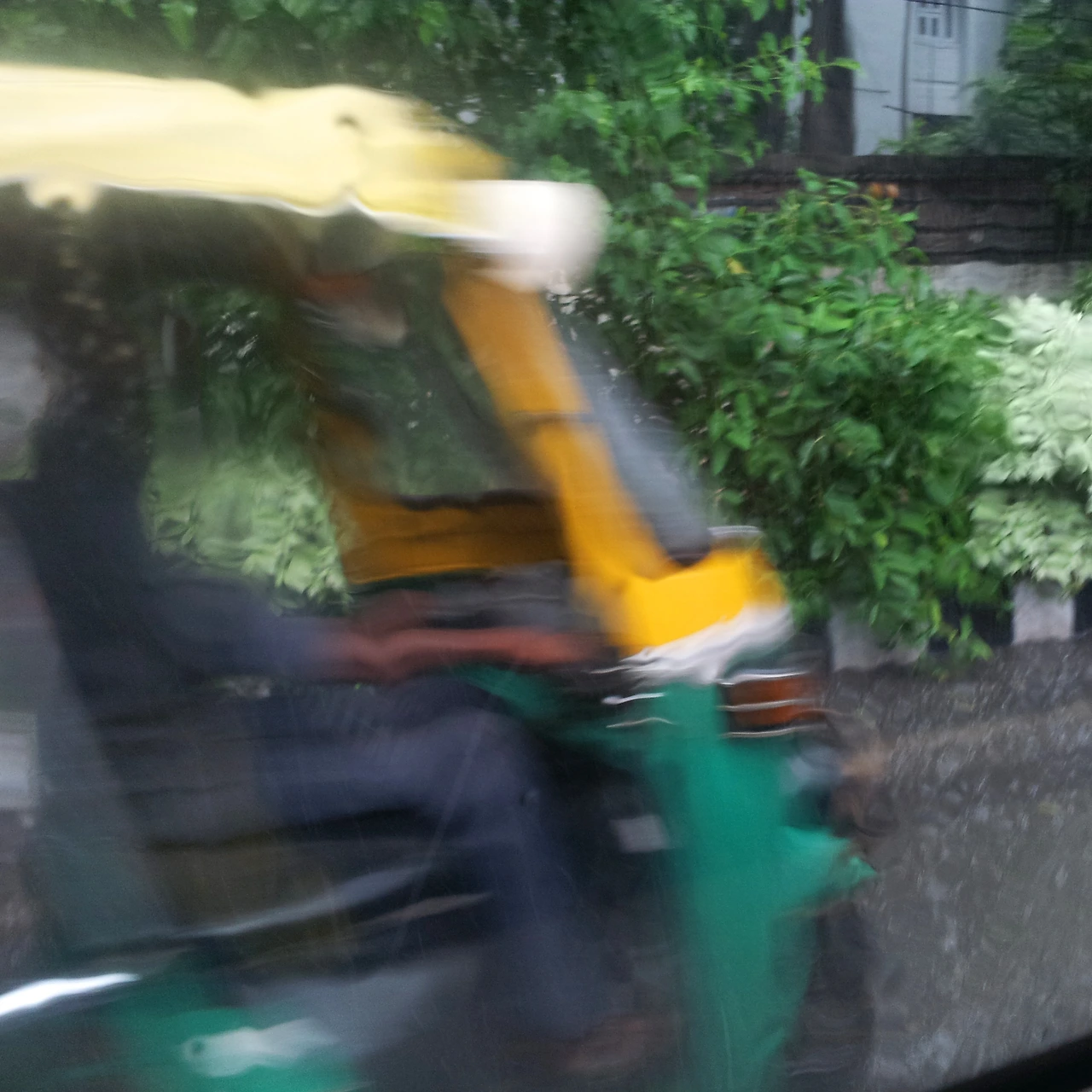 8. 비 오는 날, 손님을 태우고 가는 노오란 릭샤.