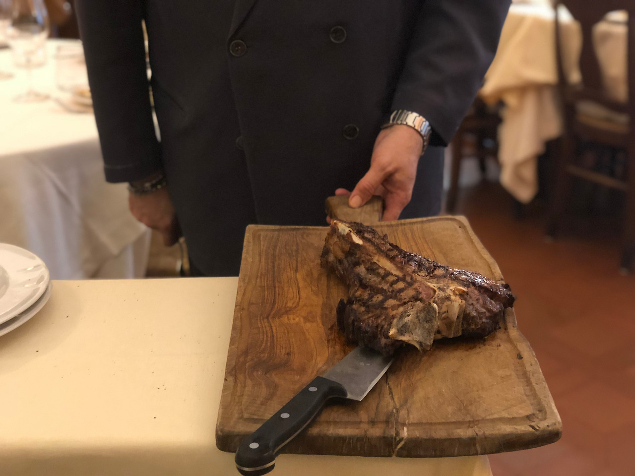 피렌체식 스테이크를 잘한다고하니 고민할 여지없이 피오렌티나 스테이크 1킬로그램 남짓과 아이와 함께 먹기 좋은 리조또도 주문했다.
