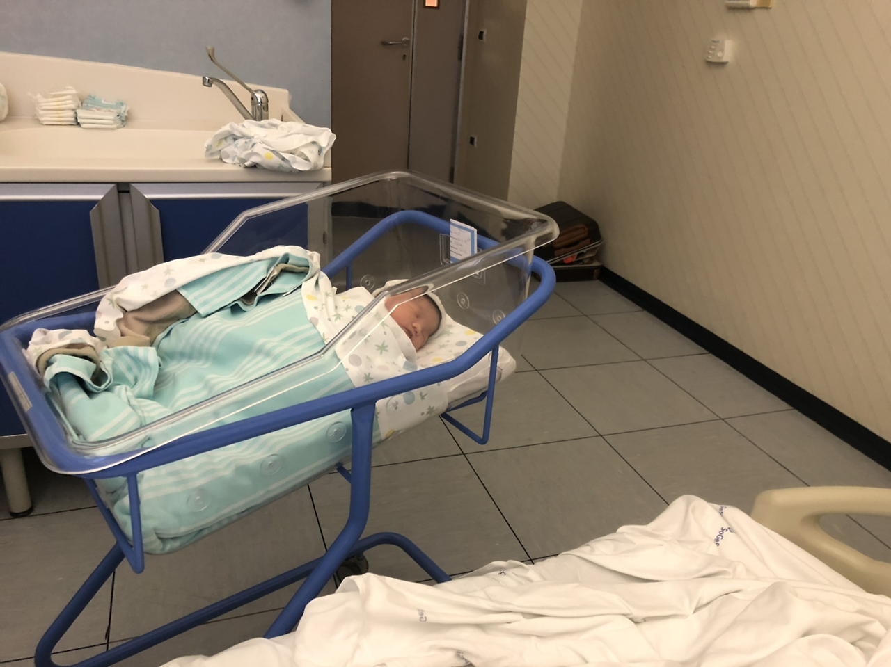 한국처럼 신생아실이라는 개념이 별도로 없는 이 곳 병원에서는 출산 후 3시간여쯤 지나면 아이는 엄마 병실로 자연스레 올라오고 퇴원 (그래 봤자 이틀)까지 모자동실이 기본이다