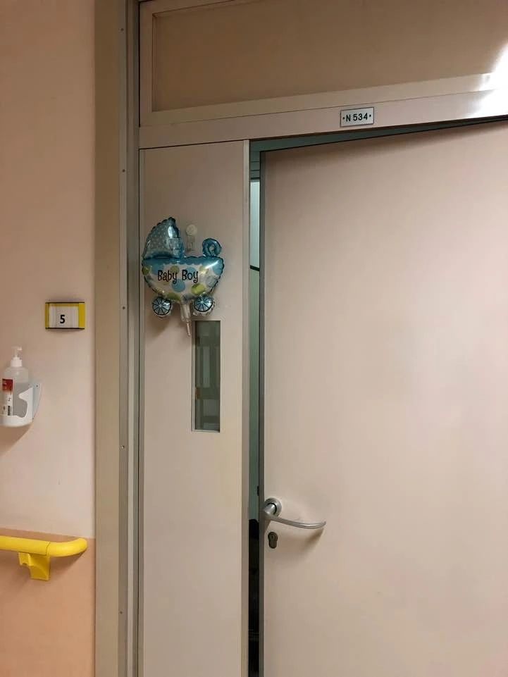첫째 아이를 낳았던 대학병원에 큰 불편함이 없었기에 둘째는 고민도 없이 동일 병원에서 출산했고 이탈리아 출산 시스템(?)에 대해 전혀 무지했던 동양인 엄마 아빠는 병실 문에 달아 줄 아무것도 준비하지 못했었던 2년 전 첫째 때와는 달리 둘째는 그나마 풍선이라도 하나 달아줄 수 있었다.