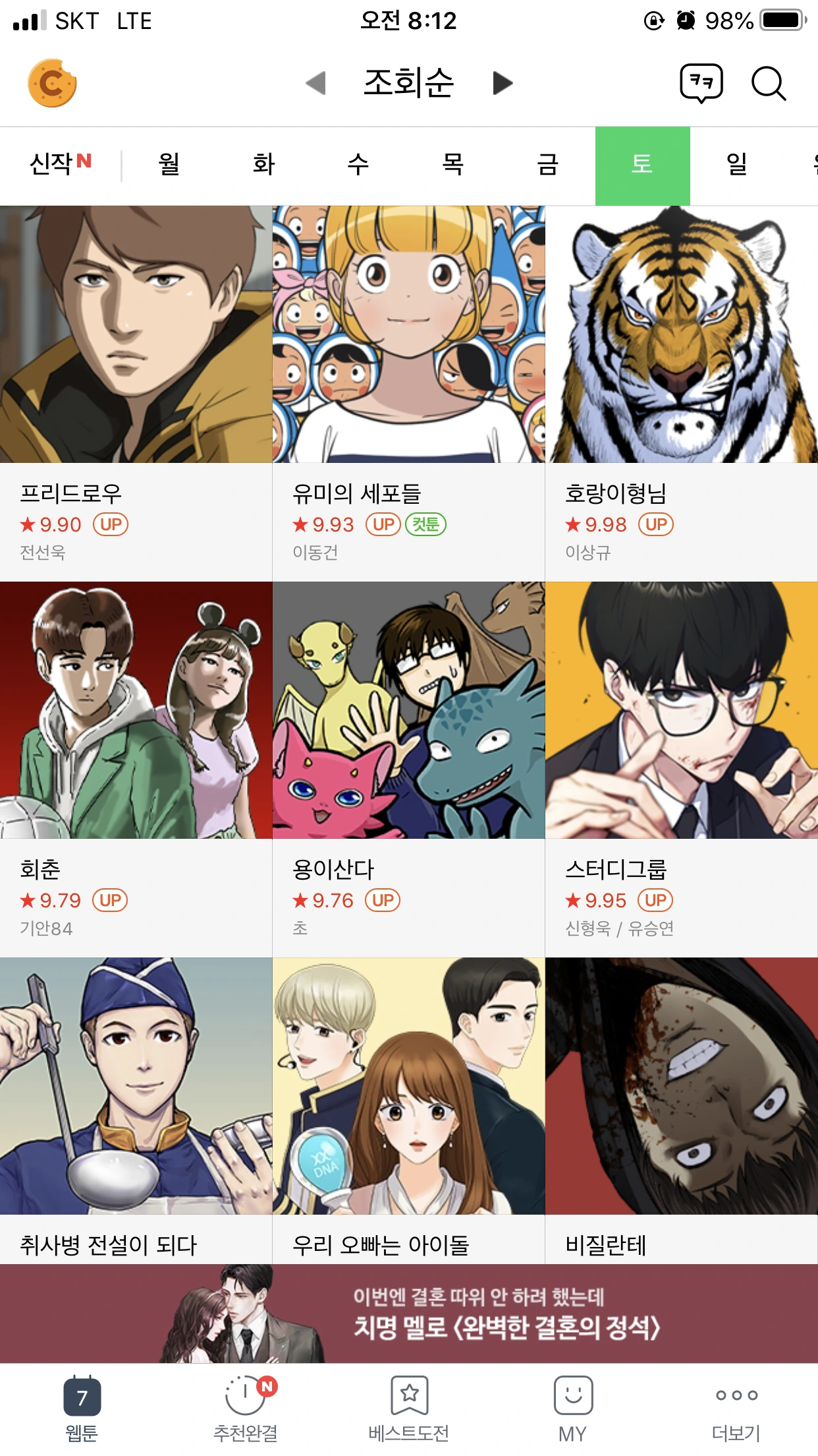 그렇지만 어제는 웹툰 앱을 열어버렸다..