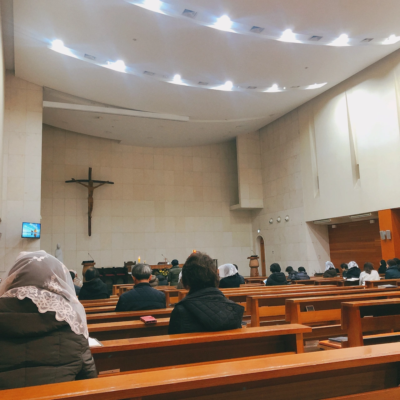 나는 성가대 활동을 하고 있어서 보통 2층에서 미사를 드리는데, 일반 미사에 올 때는 1층에서 미사를 드리기에 그 기분이 새롭다. 신부님 말씀도 더 잘 들어오고 조금 더 미사 자체에 집중할 수 있다고 할까. 주말의 시작을 미사로 하니 기분이 좋았다.