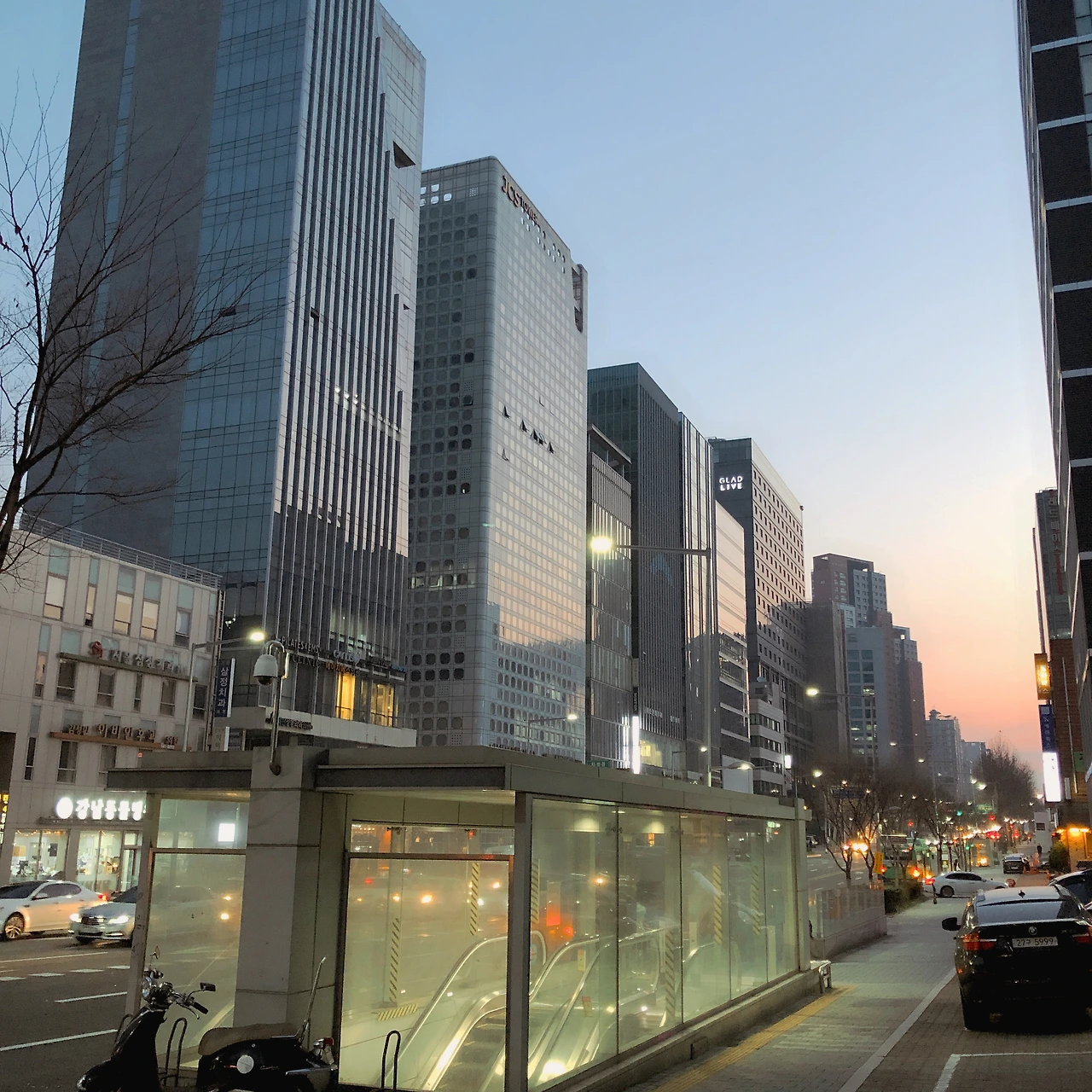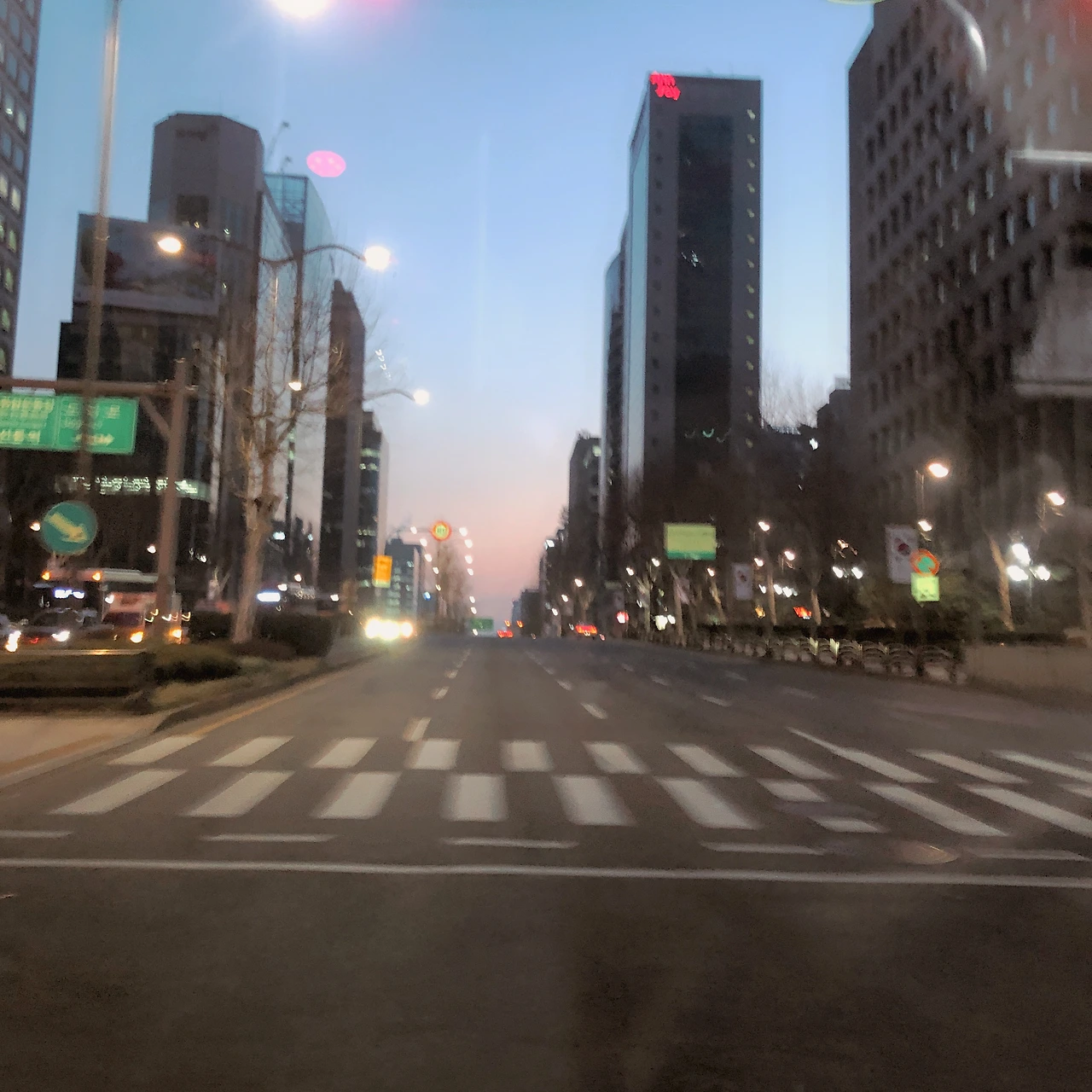 10분 정도 일찍 나온 거리의 모습은 조금 더 어두웠다. 그래서 빛들이 더 눈에 잘 들어오는 풍경이었다. 쓰레기차도 열심히 수거 중이었고, 날씨도 조금 더 추운 느낌이 드는 등 겨우 10분 차이인데 평소와 다른 기분이었다.