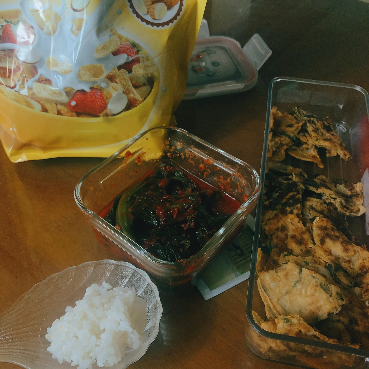갑자기 따듯한 쌀밥에 알싸한 갓김치를 올려서 먹고 싶었고, 내친김에 식탁에 있던 엄마가 예쁘게 부쳐놓은 전도 먹었다. 근처에 아몬드 후레이크도 있길래 마치 팝콘을 먹듯이 한참을 맛있게 먹었다. 그리고 침대에서 누워서 잠이 들었다가 깼는데 배가 불룩한 모습에 또 좌. 절...