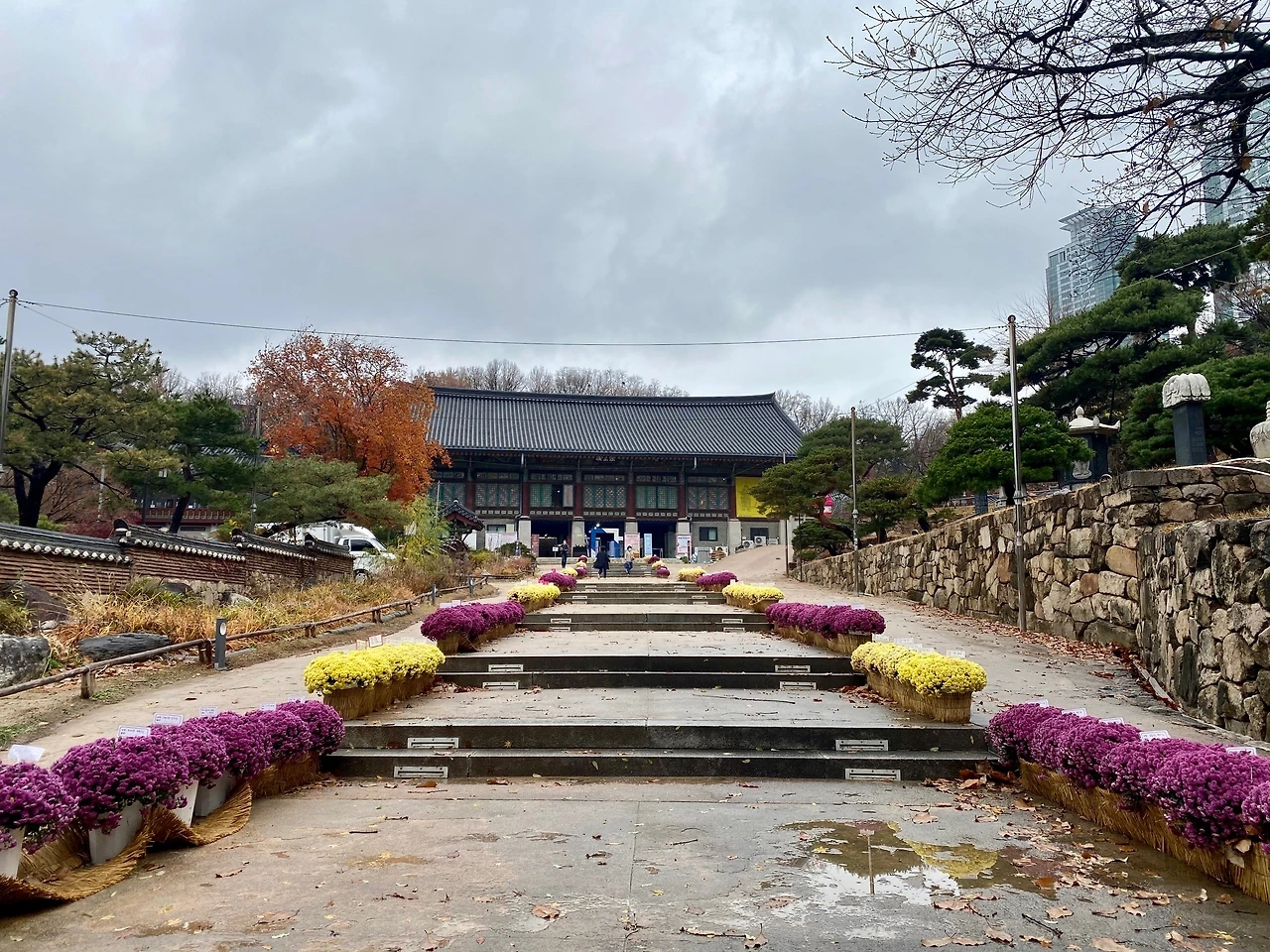 일상생활에서 선택과 집중을 한 결과 카드사에서 삼성동에 있는 호텔의 뷔페 이용권을 연말까지 사용할 것을 알리는 문자메시지를 보내왔다 며칠 전부터 특별히 아내와 함께 시간을 맞춘 날이. 근래 100년 동안 11월에 내린 가을비로는 최대 강수량이었다는 그날이었다. 맞은편에 있는 봉은사도 산책할 겸 브런치도 할 겸 점심을 먹으려고 그 호텔을 찾아갔다.