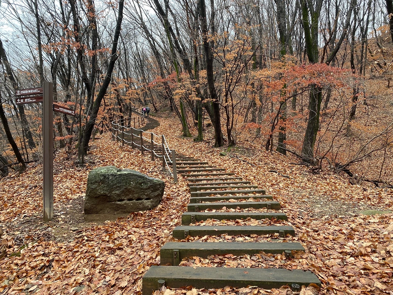 며칠 전 많은 양의 늦가을비가 내린 후 날씨가 쌀쌀해지고 가을 단풍도 모두 떨어진 뒤였지만 오랜만에 산행을 제안한 아내를 배려해서 바로 일어나 세수를 했다. 그리고 집 밑에 있는 유명 베이커리에서 커피와 빵을 사서 아침 대신 먹으며 가자고 말했다. 차를 베이커리 앞에 임시주차를 하고 한참을 기다린 후에야 아내가 뜨거운 아메리카노와 내가 좋아하는 작고 따뜻한 식빵을 사 왔다.