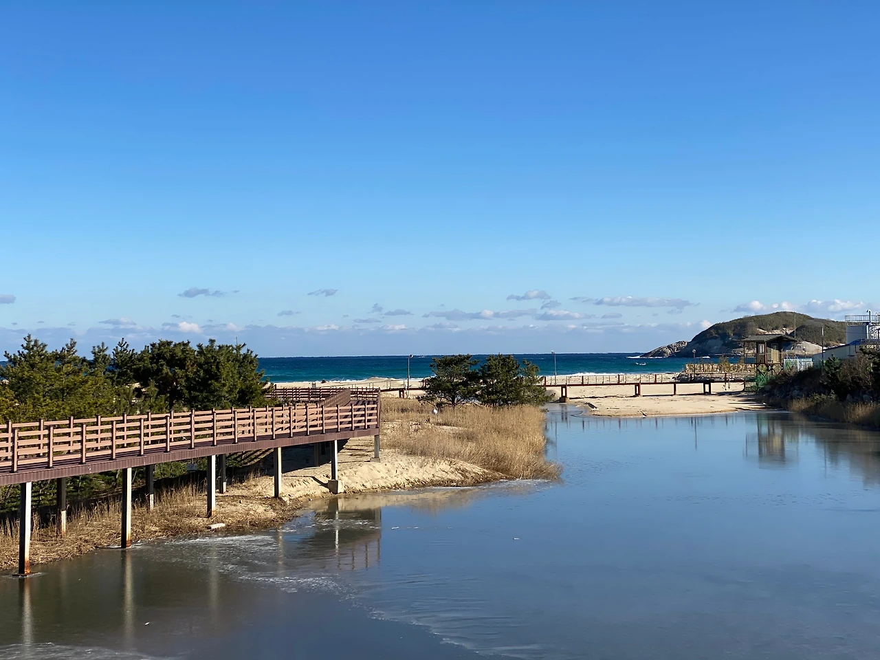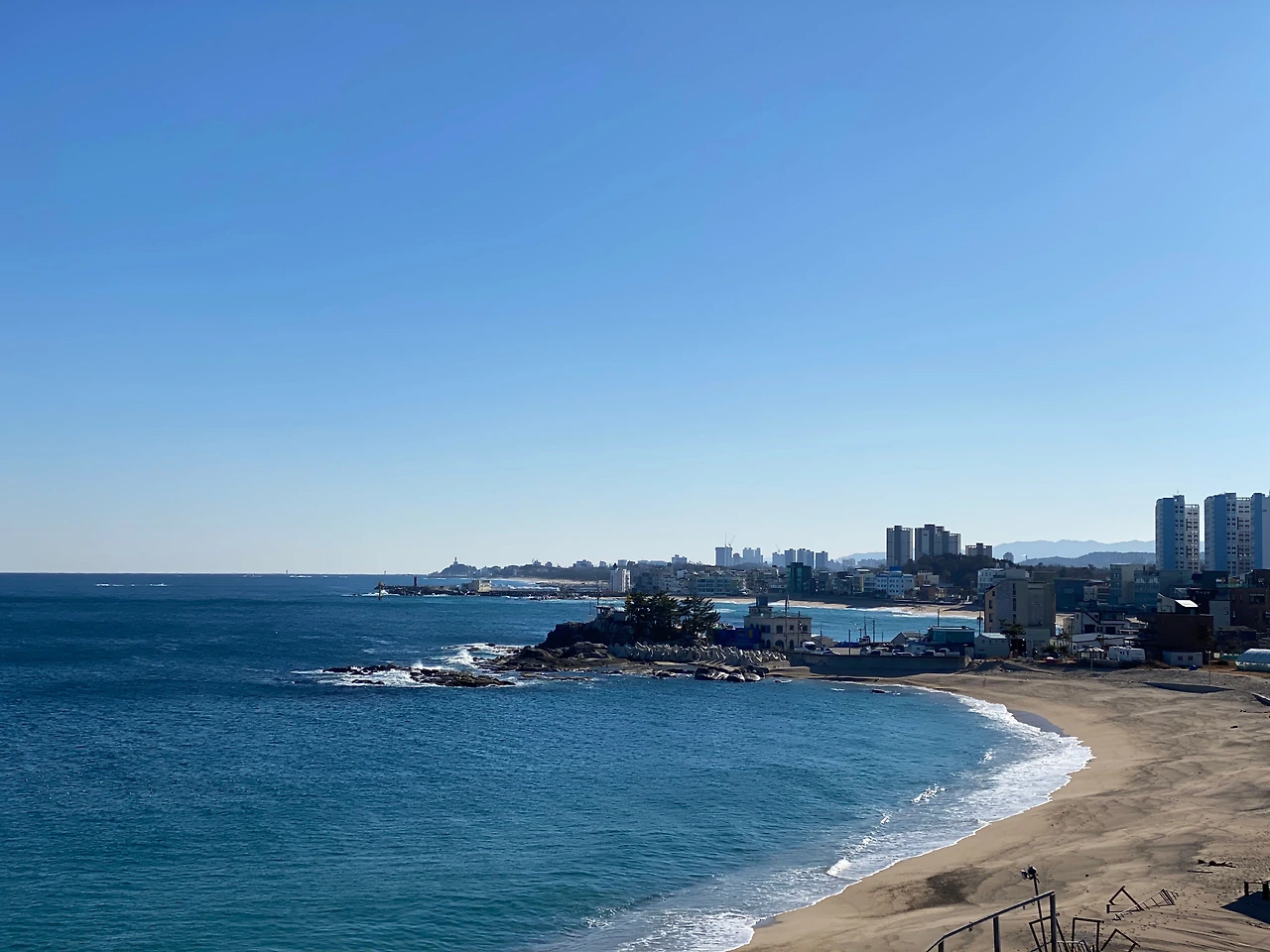 바닷가 숙소라 마운틴뷰보다는 몇만 원 비싸더라도 오션뷰를 택하길 잘했다는 것을 물멍도 좋았지만 아내의 칭찬을 받고 더 보람이 있었다. 아내는 미리 알고 준비했느냐고 물었지만, 사실 숙박 앱에서 오션뷰만 지정했을 뿐 이렇게 눈에 넘치게 탁 트인 동해 바다가 보일 줄은 꿈에도 생각지 못했다.