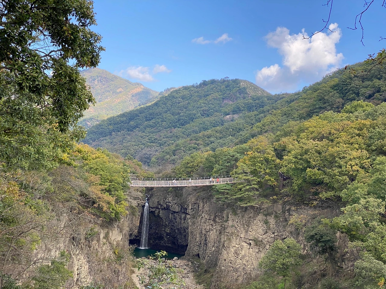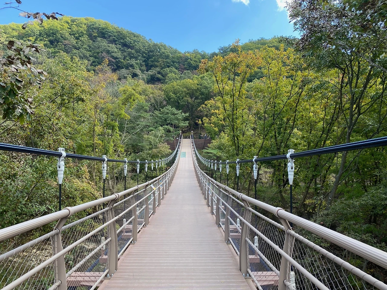 이 십여분 거리의 멍우리협곡 하늘다리에 도착하자마자 백팩을 찾던 아내는 그때서야 그 수타 손짜장 맛집 의자에 걸어두고 나왔음을 발견했고, 나는 재빨리 전화번호를 검색해 아내에게 전화를 연결해주었다. 다행히 백팩이 그대로 있음을 알고는 하늘다리를 둘러보고 찾으러 갔다. 내가 선물한 명품백팩이었던지라 기분이 좋아진 아내에게 다시 그 맛집으로 백팩을 찾으러 돌아가던 중에 아까 재인폭포에서는 할 수 없었던 말을 했다.