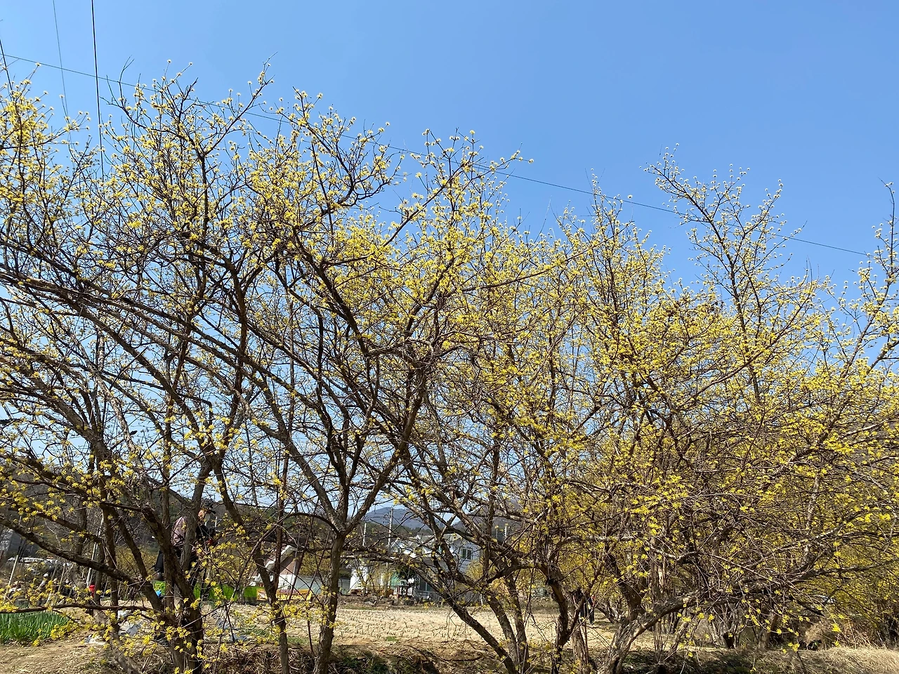 한 시간 정도 둘레길을 산책하고 점심을 먹기 위해 다시 마을로 내려오는 길에 대여섯 명의 중년 아주머니들이 노란 산수유꽃 아래 마련된 나무 탁자에 둘러앉아 준비해온 음식을 펼쳐놓고 왁자지껄 떠들면서 식사를 하고 있었다. 간단한 김밥과 커피 정도가 아닌 불고기에 쌈까지 준비해왔다. 그냥 간단한 음식은 몰라도 남의 마을까지 와서 잔치하듯 음식을 챙겨 먹는 것은 아름다운 산수유마을을 가꾸고 각종 편의를 제공하고 있는 마을분들께 예의가 아닌 것 같았다.