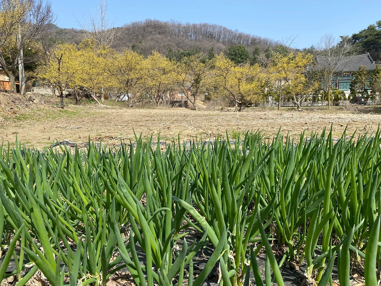 그 할머니께서는 직접 재배하신 것이라고 강조하시면서, 이제 파는 오늘이 마지막이라고 하셨다. 미나리는 깨끗하게 씻겨져 비닐봉지에 포장되어 있었고, 파는 끝물이라 오늘 아니면 못 산다고 하셨다. 야트막한 언덕이라 주변에 미나리를 키울 만한 곳이 없다는 것을 알고 있었는지 아내는 미나리는 사지 않고 대신 싱싱한 파만 두 봉지를 샀다. 그리고 주차장으로 걸어 내려오면서 마을 주변에 여기저기 널려있는 파밭을 보면서 한참을 웃었다. 매번 당하는 일이었지만 크게 기분 나빠하지 않았고, 지역경제나 어르신들 용돈에 보탬이 되면 좋겠다고 생각했다.