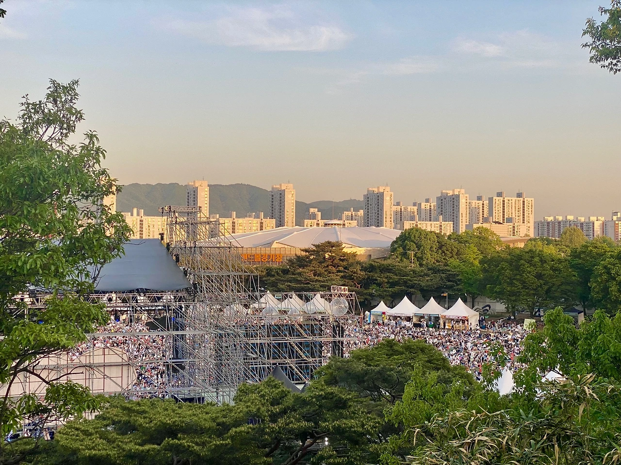 주말 오후 해 질 무렵, 아내와 함께 올림픽 공원에 미쓰김 라일락도 볼 겸 산책을 다녀왔다. 마침 야외잔디마당에서 음악공연이 열리고 있었고, 많은 사람들로 붐볐다. 공연장 옆을 지나 미쓰김 라일락이 있는 자연학습장으로 발걸음을 옮겼다. 하지만 미쓰김 라일락은 아직 만개하지 않았다. 키 큰 라일락은 모두 지고 없는데 미쓰김 라일락은 이제 보랏빛 좁쌀 같은 꽃봉오리를 틔우고 있었다.