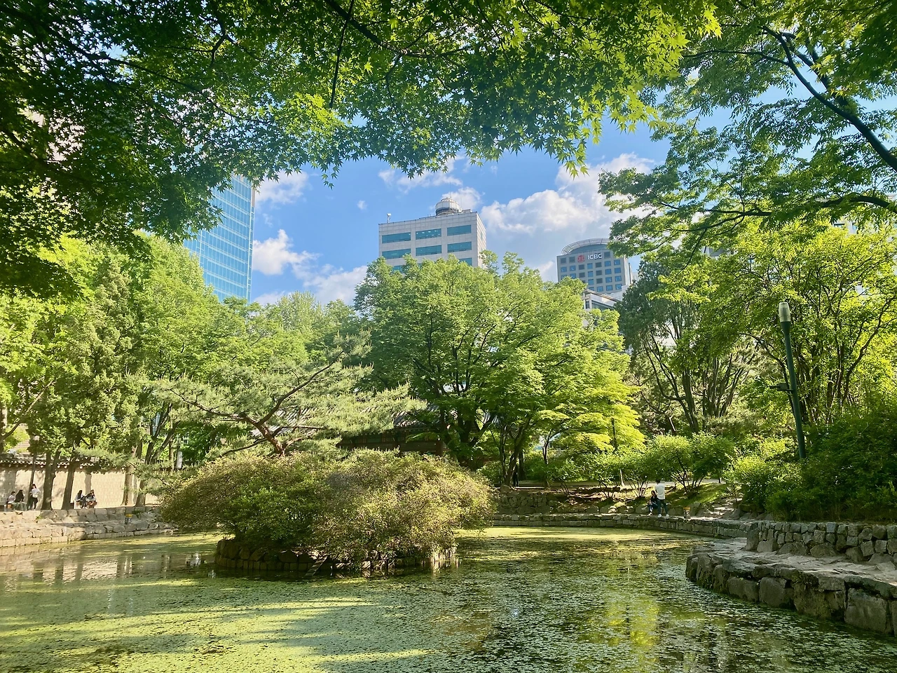 하지만, 초록초록한 화면에 너무나 힐링이 된 나머지 그냥 그 파릇한 기분을 유지하고 싶어 다시 돌담길을 되돌아 덕수궁을 찾았다. 덕수궁 연못가에 앉아 오리가족을 구경하며 충분한 쉼을 얻고 난 후, 다시 덕수궁을 돌아보았다. 늘 그렇듯 우리나라 근대사의 아픔이 속상해서 그 현장을 외면하니 항상 잘 조경된 나무와 활짝 핀 작약등 꽃들만 보였다. 우리의 궁궐은 한국적 조경의 최고봉이니까.