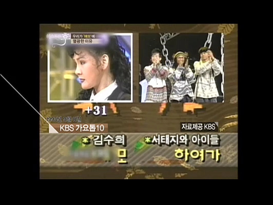 * 여기서 떠오르는 한 명의 가수가 있다. 아무도 생각지 못했겠지만 김수희다. 1993년 2집 <하여가>로 최고의 인기를 누리던 서태지와 아이들을 1위 후보로서 꺾었던 유일한 가수이자 그 해의 가요대상 수상자다. 제2의 전성기, 중흥기를 맞은 트로트가 한동안의 암흑기에 접어든 시점은 아이러니하게도 김수희의 <애모> 이후다.