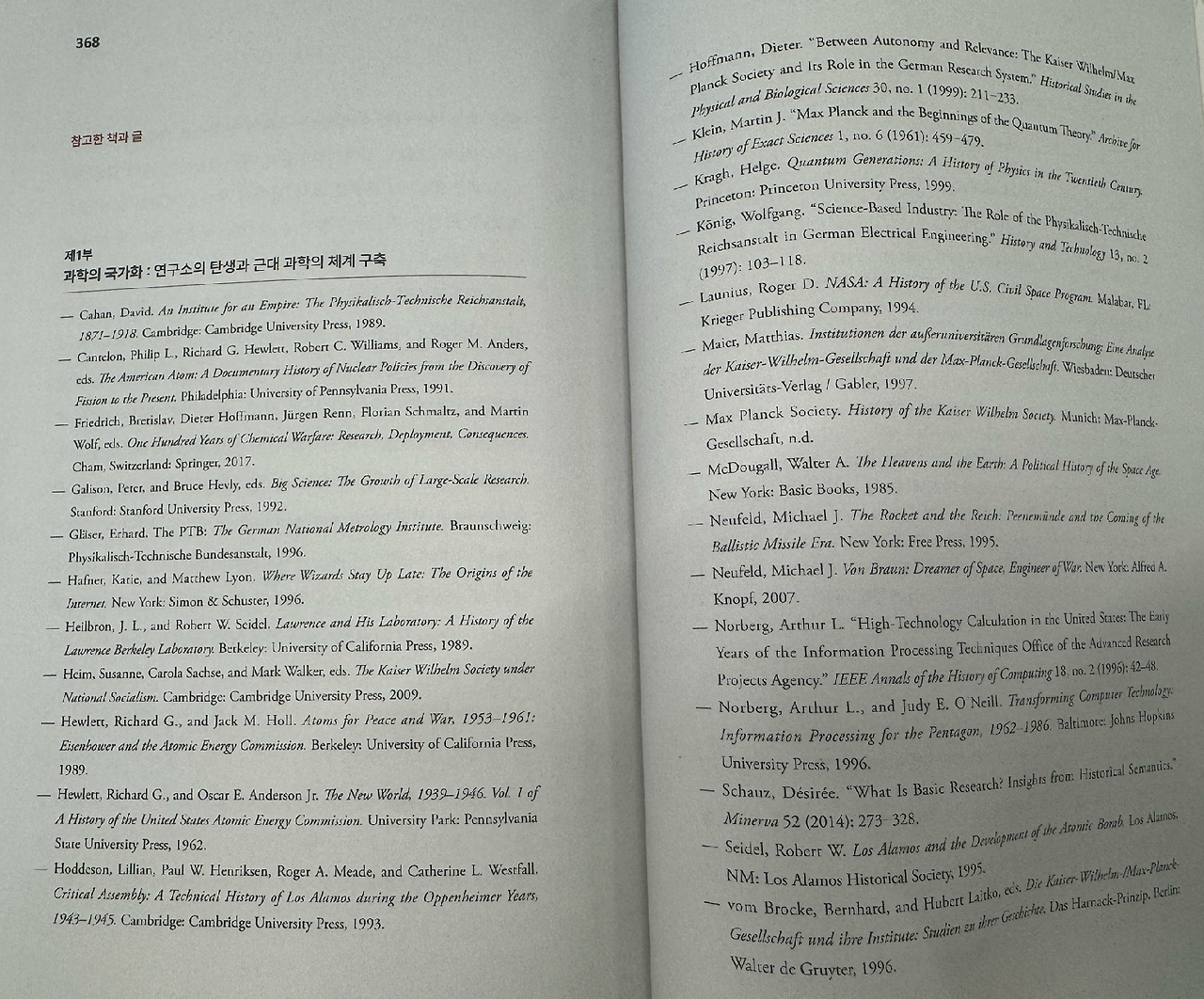 ㅡ 따라서 전쟁과 무기 개발에 과학이 동원되는 것은 필연이었다. 과학은 이 역사적 과정의 피해자이면서 수혜자이기도 했다. 전쟁의 윤리적 책임에서 자유로울 수 없게 되었지만, 동시에 과학연구에 큰돈이 몰리고 연 구소 조직이 비약적으로 커지는 기반도 되었기 때문이다. (P. 109)