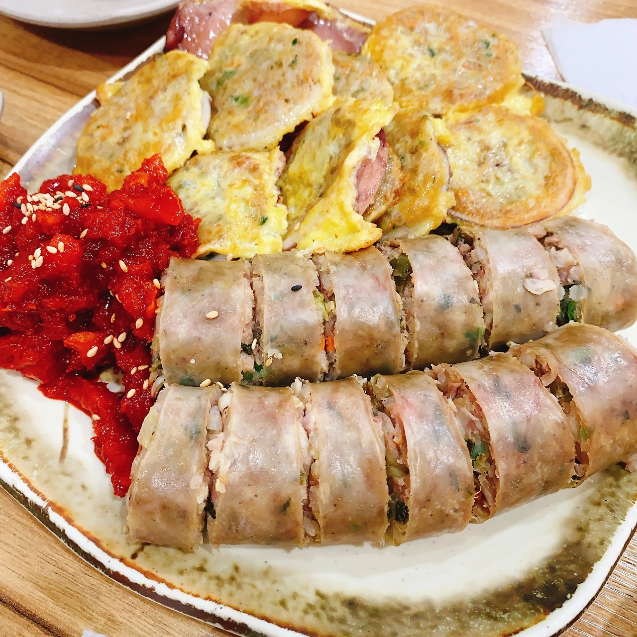 이곳의 메인 메뉴는 모둠순대(아바이순대+오징어순대, 28,000원)다. 아바이순대는 순댓속이 만원 지하철처럼 알차게 박혀있어 한 입에 먹기 어려울 지경이며, 오징어순대는 계란물로 코팅을 한번 더해 고소하고 부드러운 식감을 자랑한다. 무엇보다 이 집의 비기는 명태회다.