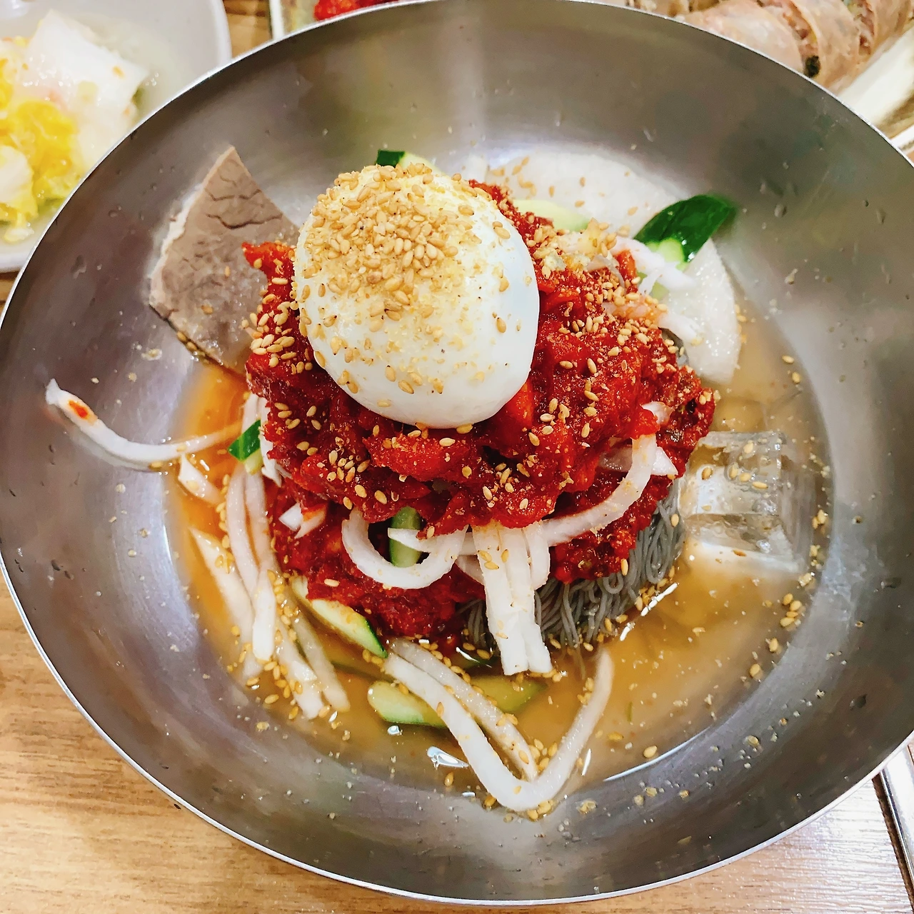 모둠순대에 곁들임으로 제공되는 명태회는 누구나 다 알지만 그 맛을 내기 힘든 달콤한 맛과 함께 부드러운 식감이 일품이다. 미리 블로그 등으로 알아본 결과, 곁들임으로 나오는 명태회가 부족하다는 말이 있어서 순댓국을 포기하고 회냉면을 추가했다. 냉면 자체는 큰 임팩트는 없었지만, 명태회를 조금 더 먹을 수 있다는 것만으로 내 선택을 칭찬할 수밖에 없다.