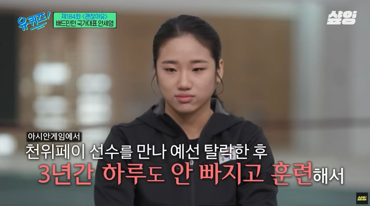 고작 21살에 불과한 안세영 선수는 현재 세계랭킹 1위다. 그녀의 국제무대 데뷔는 2018년, 이전 아시안게임이 열렸던 해이기도 하다. 16살의 신인선수가 1차전에서 만난 선수는 이날 결승전에서 만난 천위페이. 안세영은 제대로 힘도 못써보고 1차전에서 그야말로 '광탈'을 하고 말았다. 이후 도쿄올림픽에서도 같은 선수에게 8강전에서 패배. 그리고 올해 아시안게임에서는 결승에서 만나게 된 것이다.