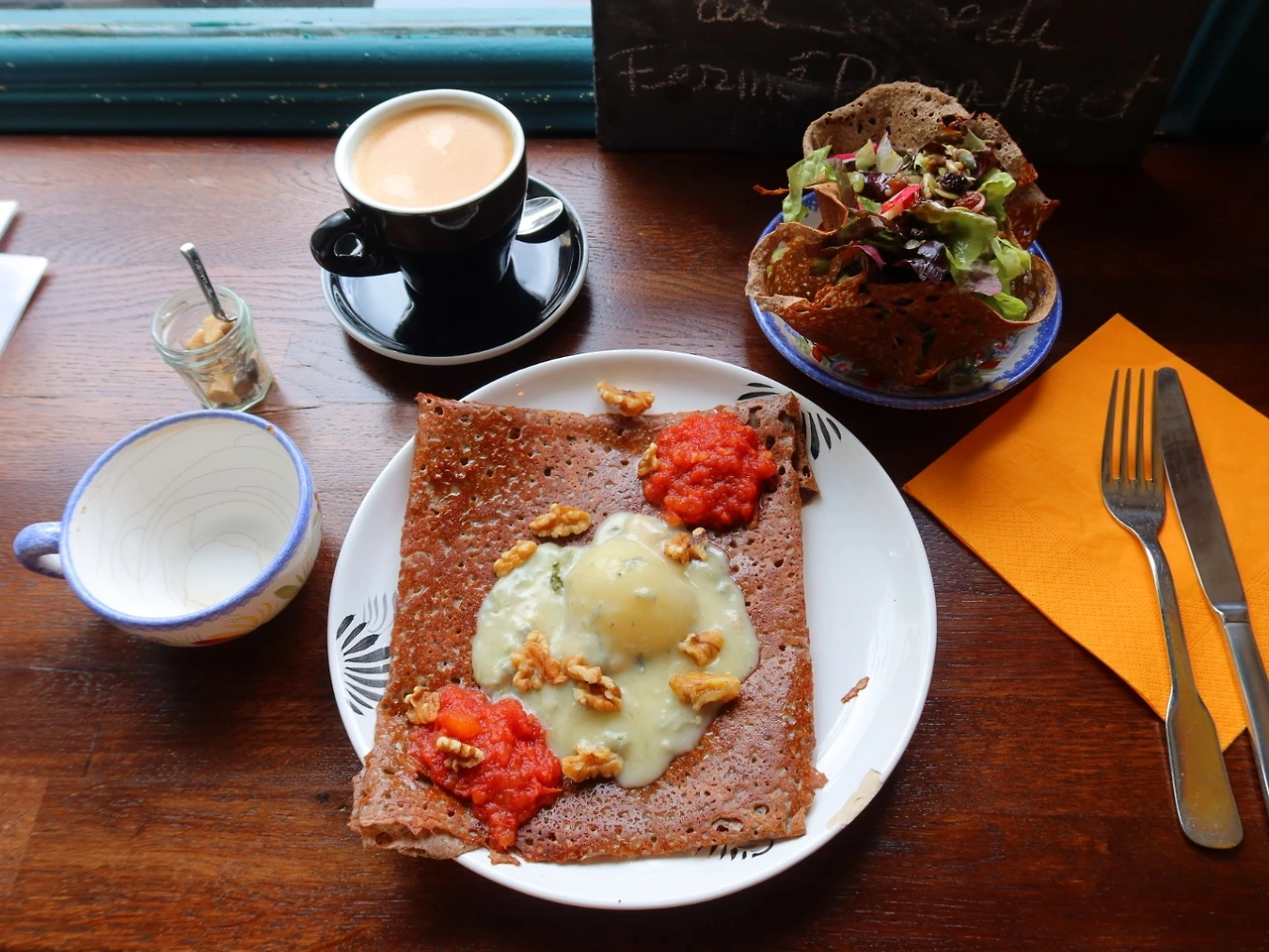 조금 걸어가다 보면 크레페레스토랑이 꽤 있었다. 점심시간마다 지나가면 사람들이 북적여서 이곳은 크레페를 많이 먹는다는 걸 느낄 수 있었다. 그래서 나도 이곳에 있는 동안 세 번의 크레페레스토랑을 찾았다. 크레페의 종류가 다양했다. 얇은 동그란 밀에 베이컨, 계란, 각종 야채들, 해산물 등을 얹어 따뜻하게 구워주신다. 마치 한국의 김치전 파전 같은 느낌이지 않을까 싶다.