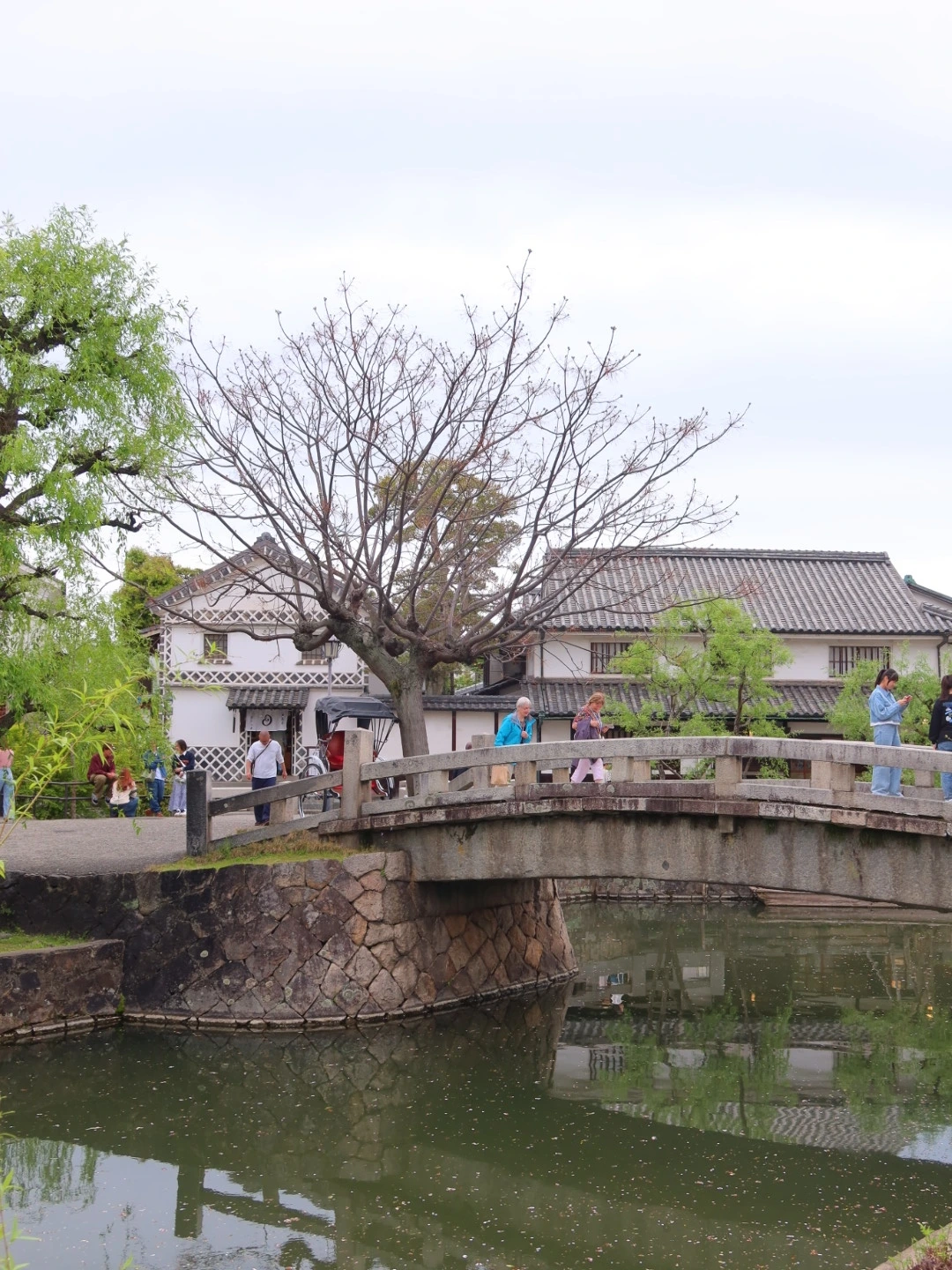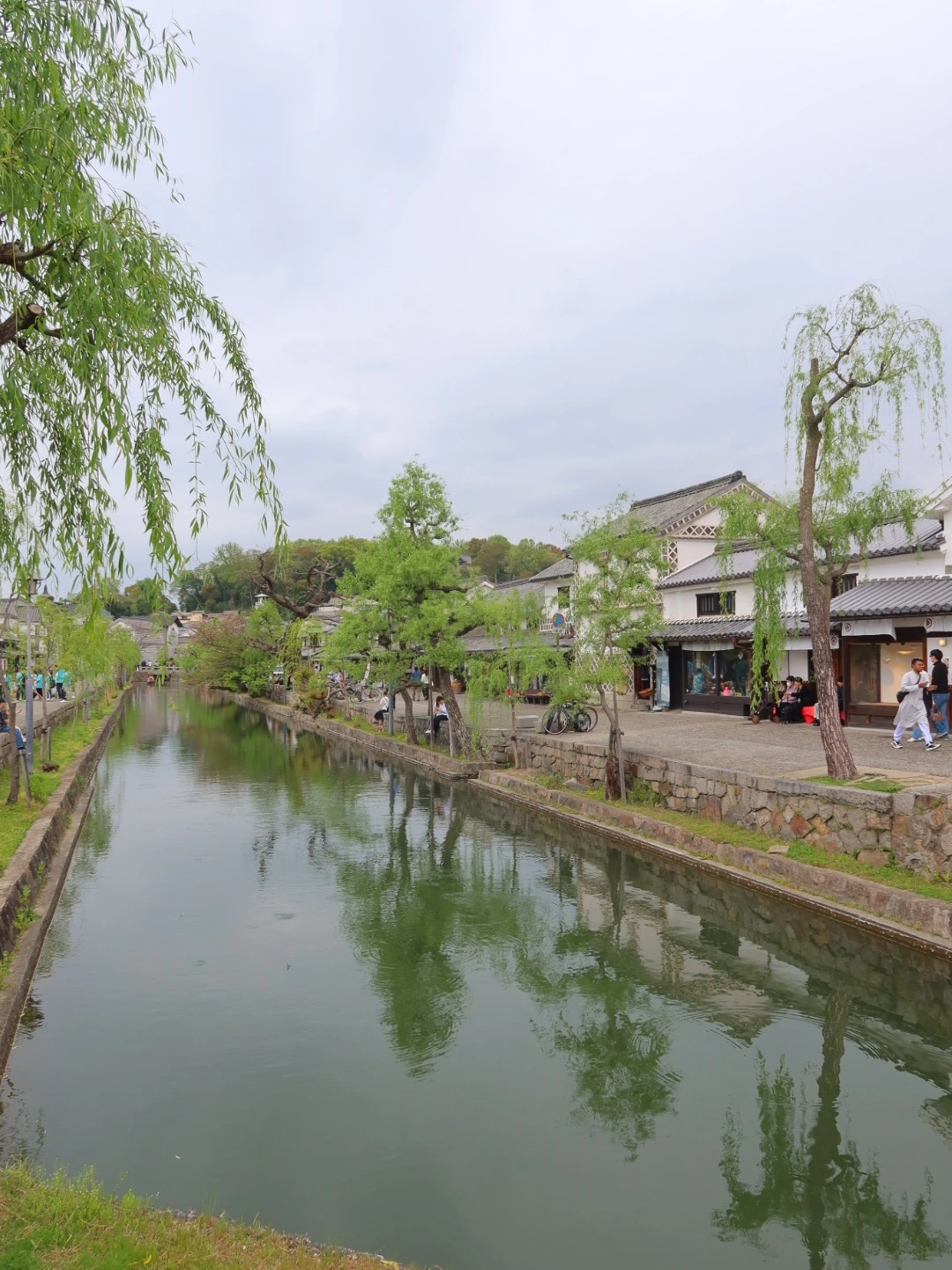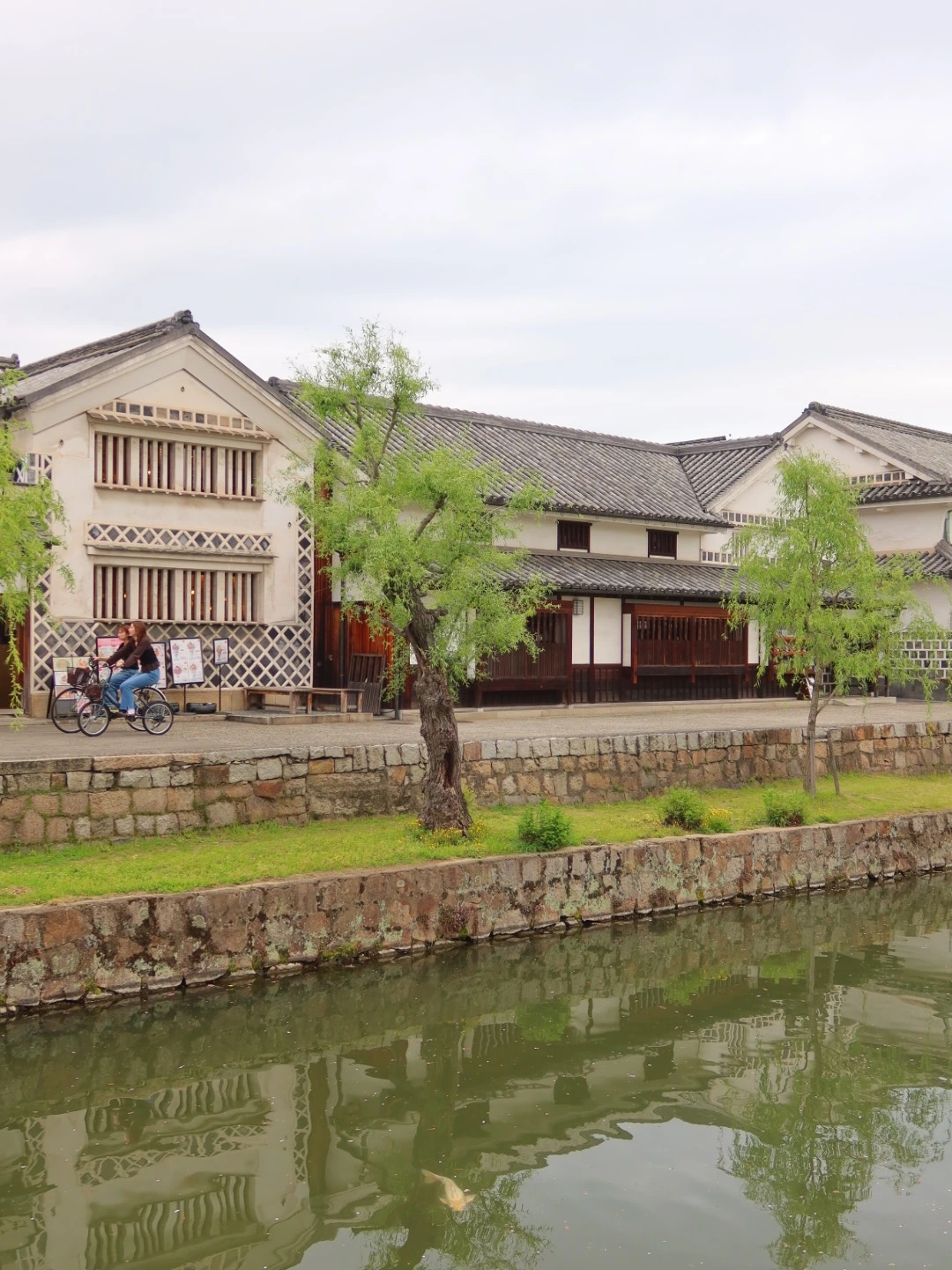 운하 옆에는 에도시대 거리들과 하얀 벽, 검은 기와 그리고 전통창고(쿠라)들이 줄지어 있는 아름다운 거리를 볼 수 있다. 그 거리를 바라보며 사진을 찍기도 하고 작은 스케치북에 그 모습을 그려내는 로맨틱한 풍경도 볼 수 있었다. 아기자기한 가게, 일본의 정취가 묻어나는 카페가 많아 구경하며 산책하기 좋다.