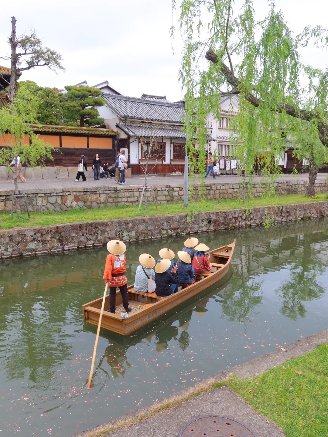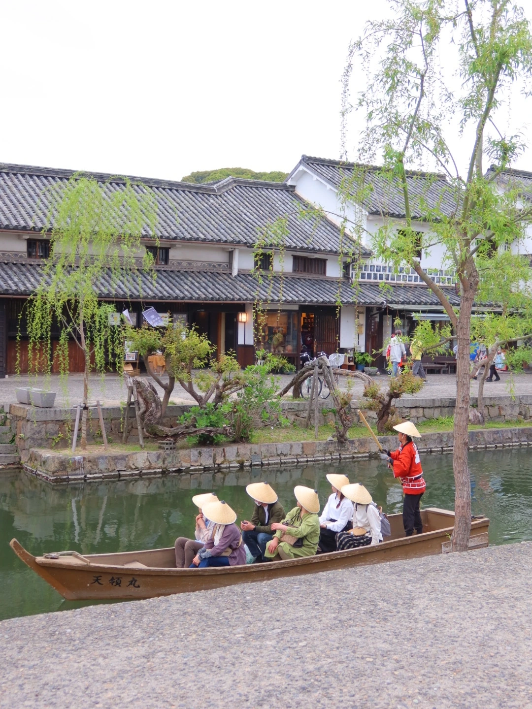 나룻배에 타면 구라시키 미관지구에 대한 이야기는 시작된다. 긴 장대가 물살을 가로지르며 천천히 앞으로 간다.