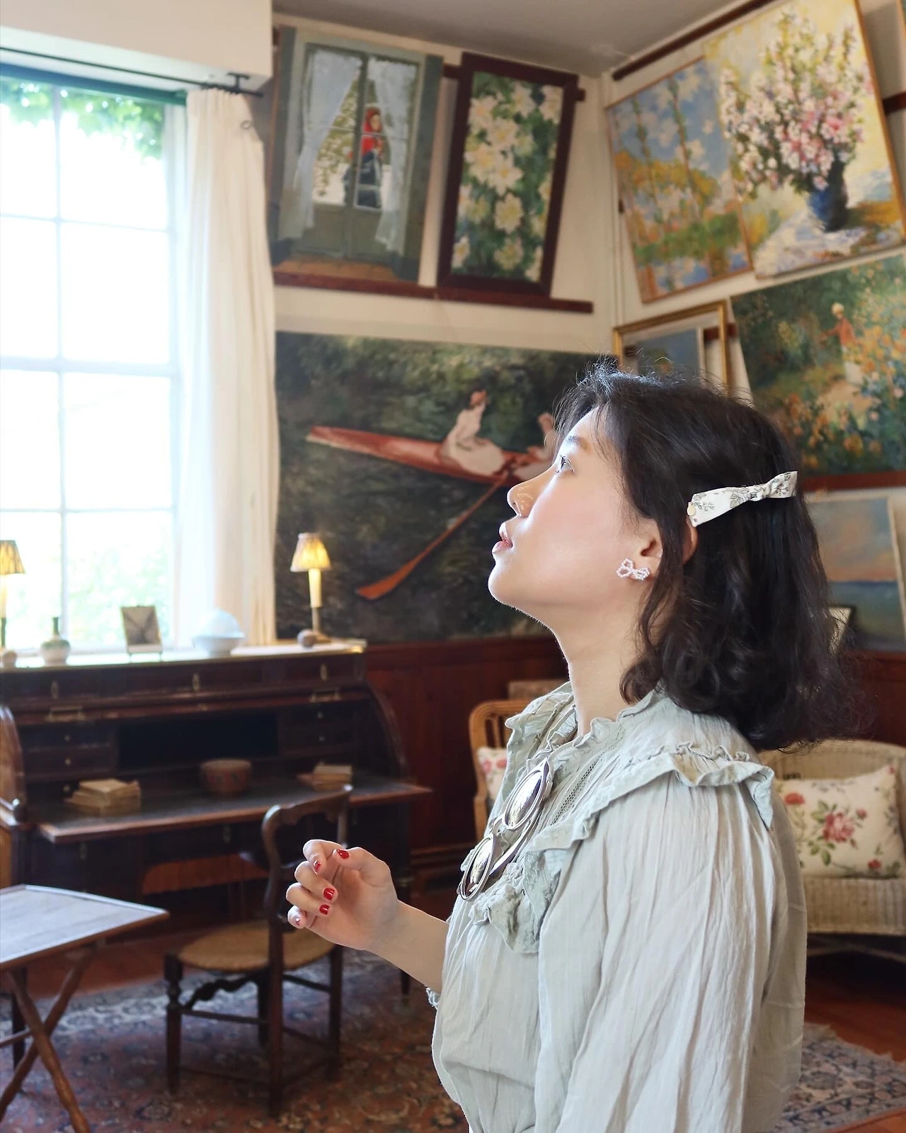 지베르니에 도착했을 때, 나는 오래된 그림 속으로 들어온 듯한 기분을 느꼈다. 파리와는 다른 잔잔한 풍경과 정원 속으로 향하는 길가에는 사랑스러운 시골집들이 줄지어 있었고 집에서 예쁘게 가꾼 화분에 핀 꽃들이 나를 반겨주었다. 정원에 들어서자 따사로운 빛들이 꽃들과 함께 어우러져 있었다.