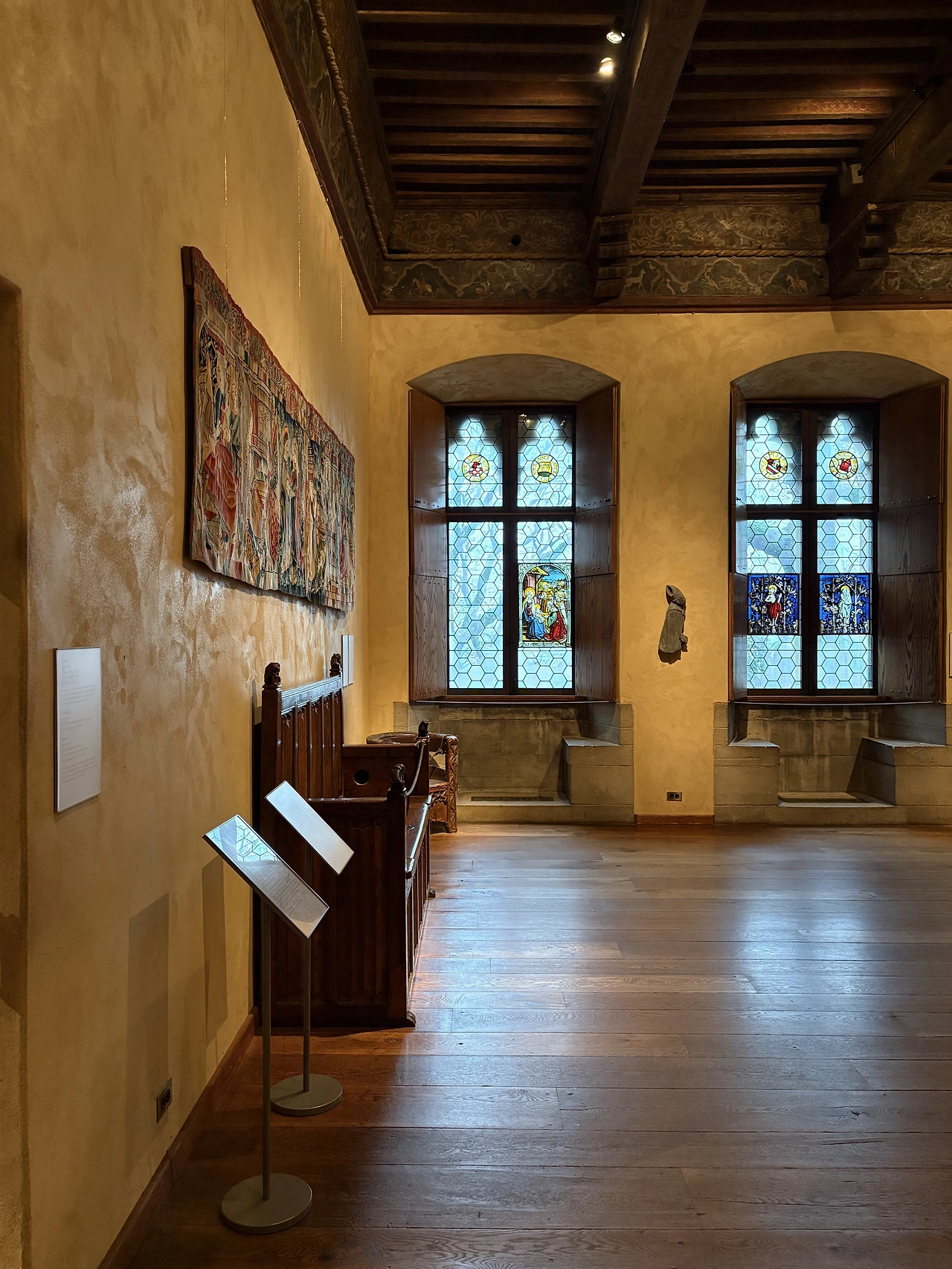 벽을 채운 태피스트리에는 오랜 시간이 고스란히 스며있었다. 말없이 그 자리를 지켜온 것들 앞에서 시선은 자연스레 오래 머물렀다. 빛을 머금은 스테인드글라스는 화려함으로 시선을 끄는 대신, 천천히 다가와 깊이 남는 아름다움이었다.