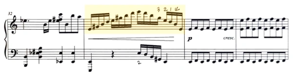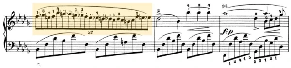 아르페지오: '하프를 타다'를 뜻하는 이탈리아어인 아르페지아레(arpeggiare)에서 유래. 기타나 하프와 같은 현악기라면 아르페지오 연주가 좀 더 수월하려나? 피아노 뱁새는 황새인 하프를 따라가려다 그만 가랑이가 찢어지는 게 아닌지 걱정스럽다.