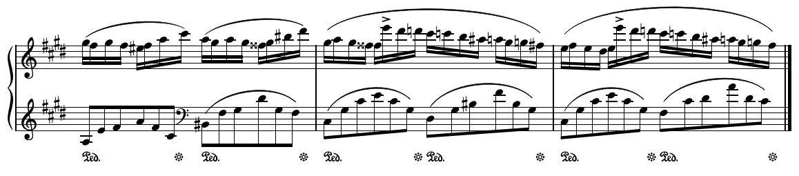 즉흥환상곡은 왼손과 오른손이 서로 엇박이라는 점 때문에 시작이 어려운 곡으로 분류한다. 속도를 낮춰 천천히 연습을 하는 게 피아노 연습의 정석인데 폴리 리듬 엇박은 속도를 낮춰서는 왼손과 오른손의 타이밍을 개운하게 나눌 수 없게 만든다. 부연 설명하면 오른손이 16분 음표를 연주하는 동안 왼손은 셋잇단 8분 음표를 연주해야 하는데 그 박자가 딱딱 맞아떨어지지 않는다는 거다.그런데 익숙해지게 되면 두 손이 한 마디를 따로 또 같이 연주하는 게 더 수월할 수도 있다는 것을 알게 된다. 엇박 때문에 시작이 당황스러운 것은 분명하지만 의외로 별다른 어려움 없이 엇박자 감을 익혔다. 어라 이게 왜 되는 거지? 엇박이 안돼서 고생을 많이 한다는 글들을 여기저기서 많이 보아온 터라 궁금해하면서도 살짝 각오를 하고 있었기 때문에 더 당황스러웠다. 나 이제 숨겨진 재능을 드디어 꽃 피우는 것인가? 어쩌면 양손잡이인 내가 왼손 오른손이 서로 친하지 않고 따로 노는데 익숙한 덕분이 아닐까 생각해 본다. 시작은 좋았다.