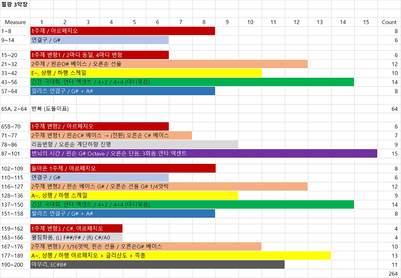 *암보 질문을 하기 전에 전에 이 곡의 전체 마디 수와 형식을 구분하여 색상을 달리하여 엑셀파일을 만들어달라고 했음
