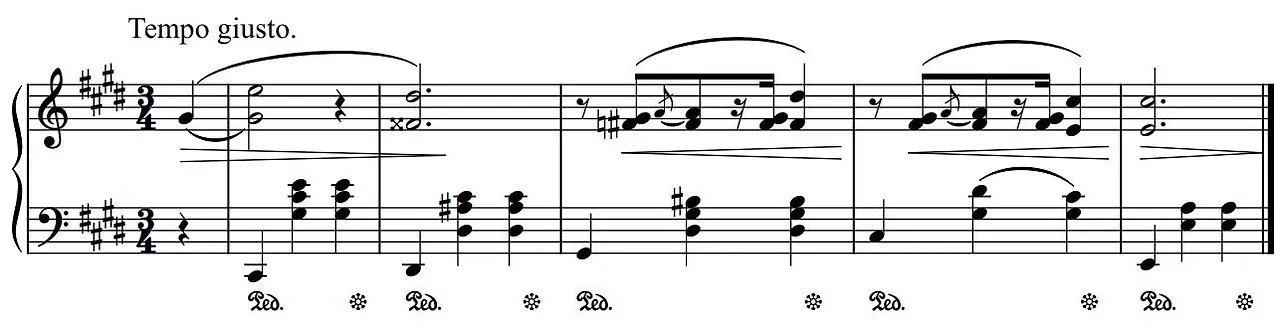 Theme B의 도입부는 곡 전체에서 총 6번 반복된다. Piu mosso (보다 빠르게) 속도인데 여러 피아니스트의 연주를 들어보면 속도는 천차만별이다. 지나치게 빠르면 발랄하고 즐거운 느낌보다는 마음이 급해진다. 속도는 취향이니 자기만의 속도를 찾아 그 목표로 차근차근 나가야 할 것이다. Theme B. 여기까지는 그럭저럭 초견으로 분위기와 어려운 점을 확인하였을 텐데 첫인상이 꽤 당황스러웠던 C 주제가 기다리고 있다.