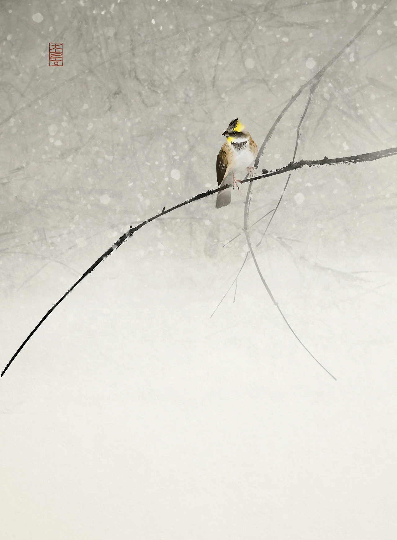 입춘 이틀 전, 봄을 노래하는 노랑턱멧새를 만났다. 태화산 기슭의 작은 골짜기에서 붉은오목눈이 무리와 함께 마른 덤불 사이를 누비고 있었다. 노랑턱멧새는 박새와 참새, 오목눈이와 쑥새 무리와 함께 몰려다니며 겨울을 난다. 그러다 봄기운을 느끼면 여러 산새들 가운데 가장 먼저 목청을 풀기 시작한다.