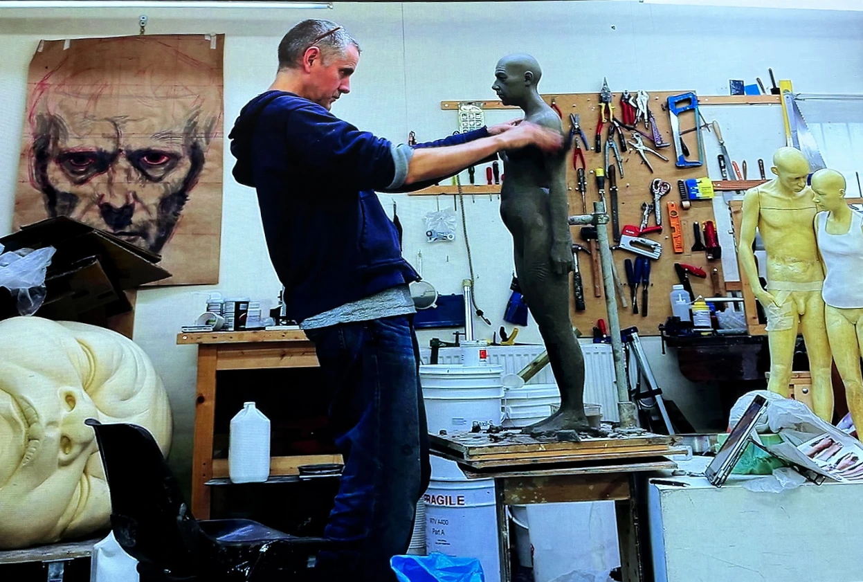 론 뮤익은 좁은 작업실에서